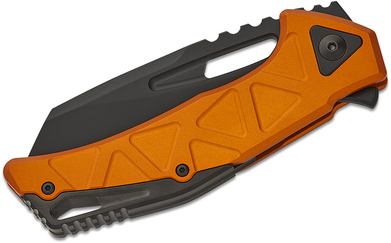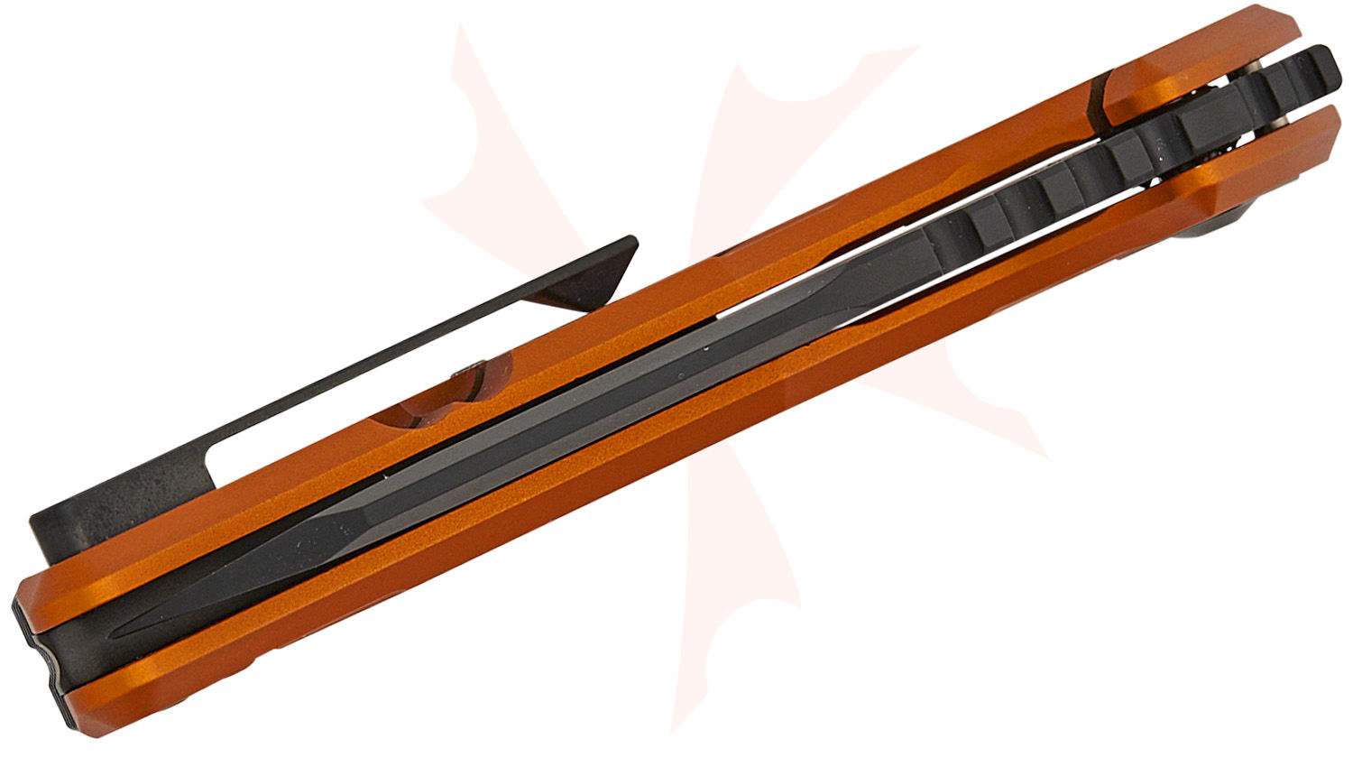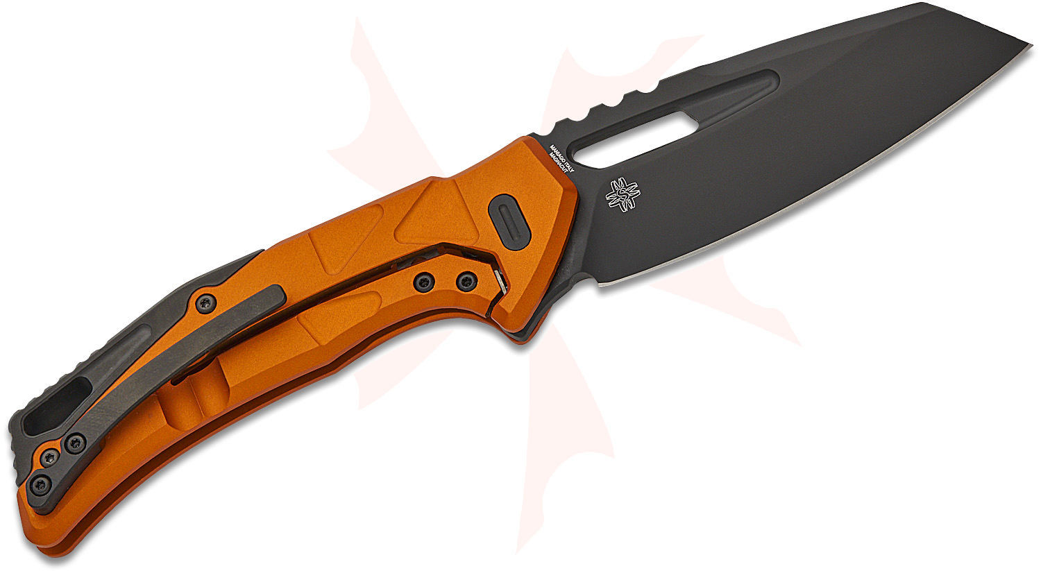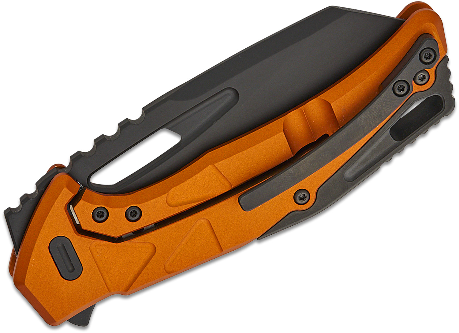 Fox FX-552 ALBOR Stefan Merk Chronos Frame Lock Flipper Knife 3.54" CPM-MagnaCut Black PVD Reverse Tanto Blade, Orange Aluminum Handles