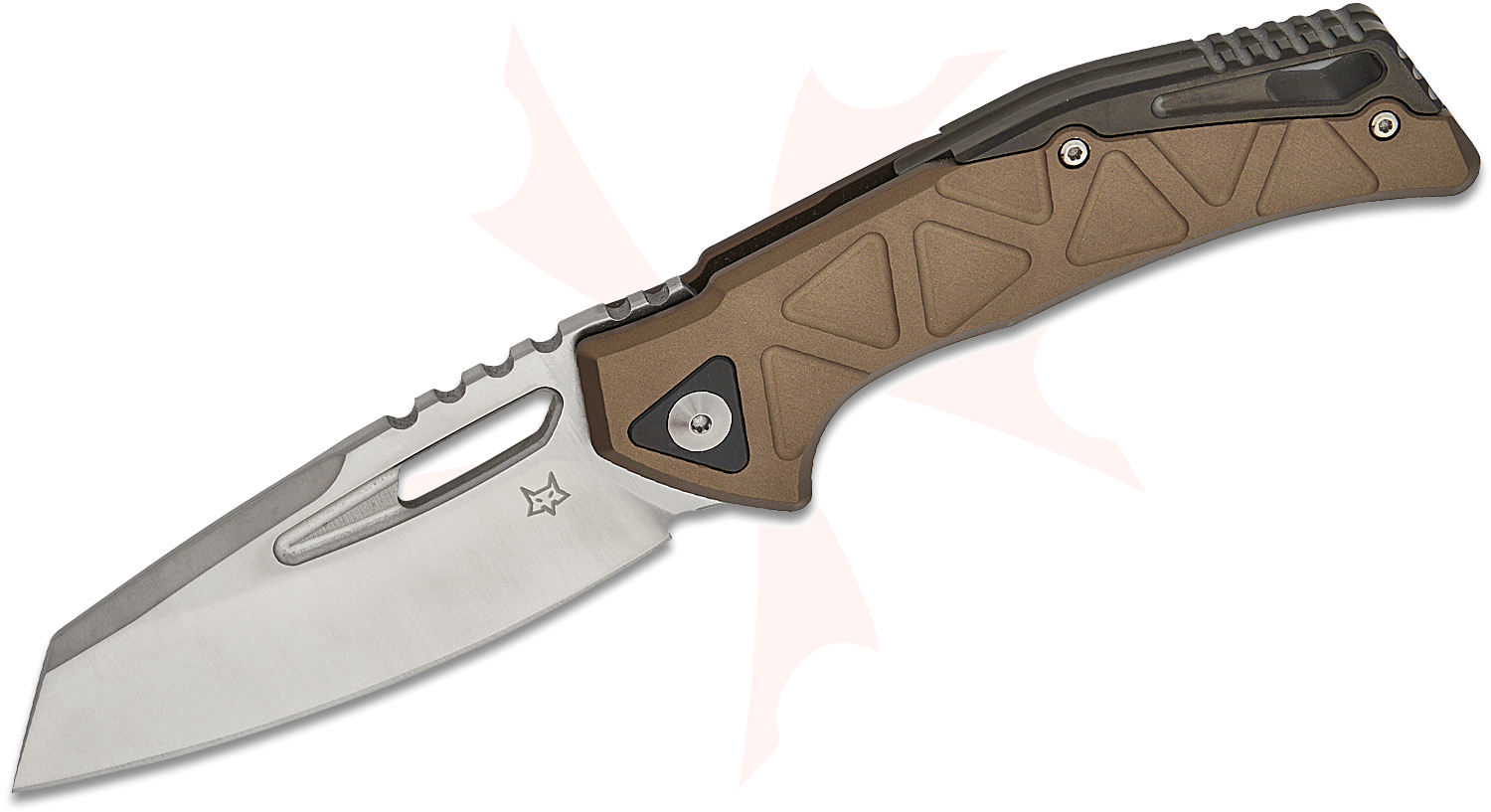 The Fox FX-552 Chronos flipper knife combines premium materials and cutting-edge design for top-tier performance. Featuring a 3.54" reverse tanto blade made from CPM-MagnaCut stainless steel, this knife delivers excellent edge retention and durability. The aluminum handle provides a striking look and ergonomic grip, while the frame lock ensures secure blade deployment. Weighing 4.52 oz. and offering a tip-up right carry pocket clip, the FX-552 is an ideal EDC companion. Designed by Stefan Merk and crafted in Italy, this knife is built for precision and reliability. This model features bronze aluminum handles and a satin blade finish.