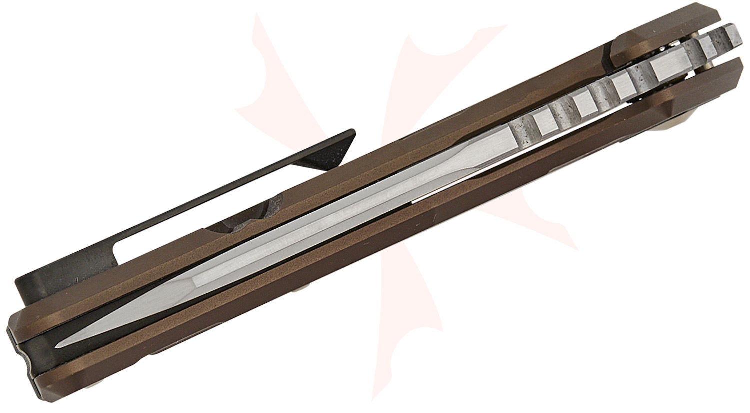 Fox FX-552 ALBR Stefan Merk Chronos Frame Lock Flipper Knife 3.54" CPM-MagnaCut Satin Reverse Tanto Blade, Bronze Aluminum Handles