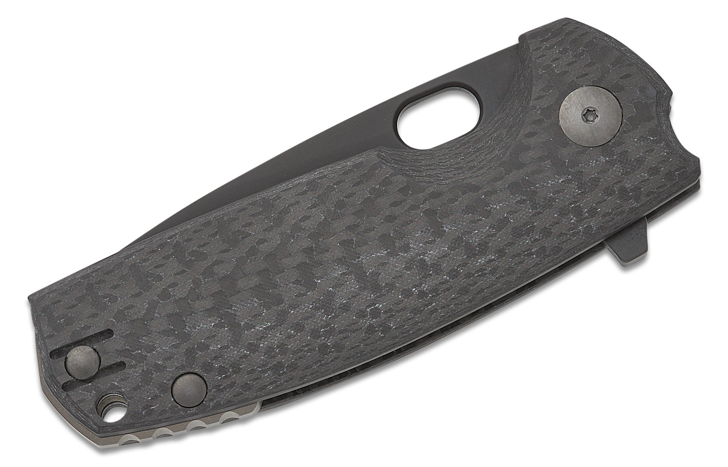 The carbon fiber handles provide a high-class look and sturdy grip, while a titanium backspacer provides a nice contrast. A deep-carry wire clip can be set up for right or left-handed carry and keeps the knife in your pocket in a tip-up configuration for ready deployment.
