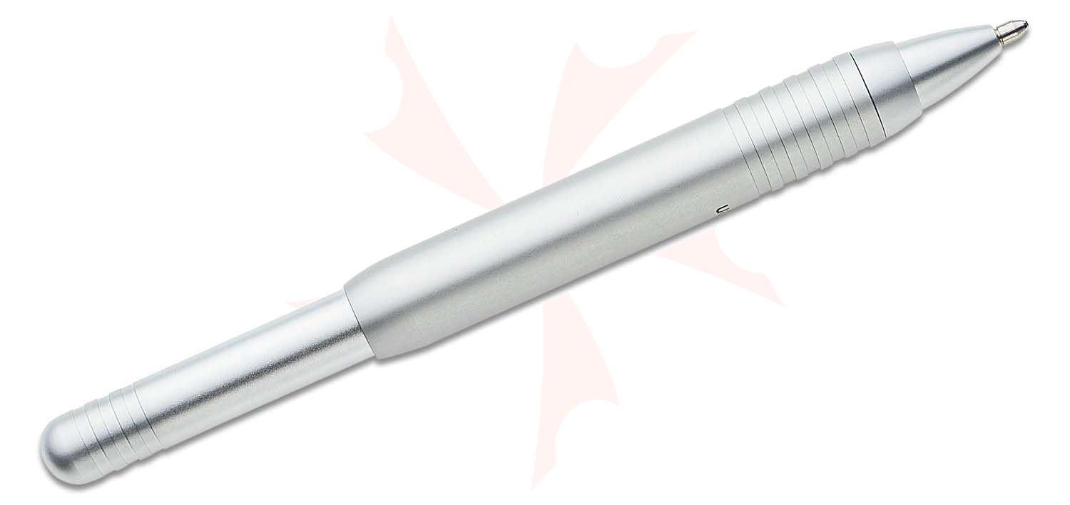 The Telescopic Space Pen features solid aluminum construction and a unique retraction mechanism. Pulling on the end of the pen exposes the ballpoint tip and creates a full-length writing instrument. It has no cap, you simply pull the tip to extend the refill and push it in to withdraw the refill. Always ready to write, even with one hand. Equally easy to use one hand to retract and put in your pocket.