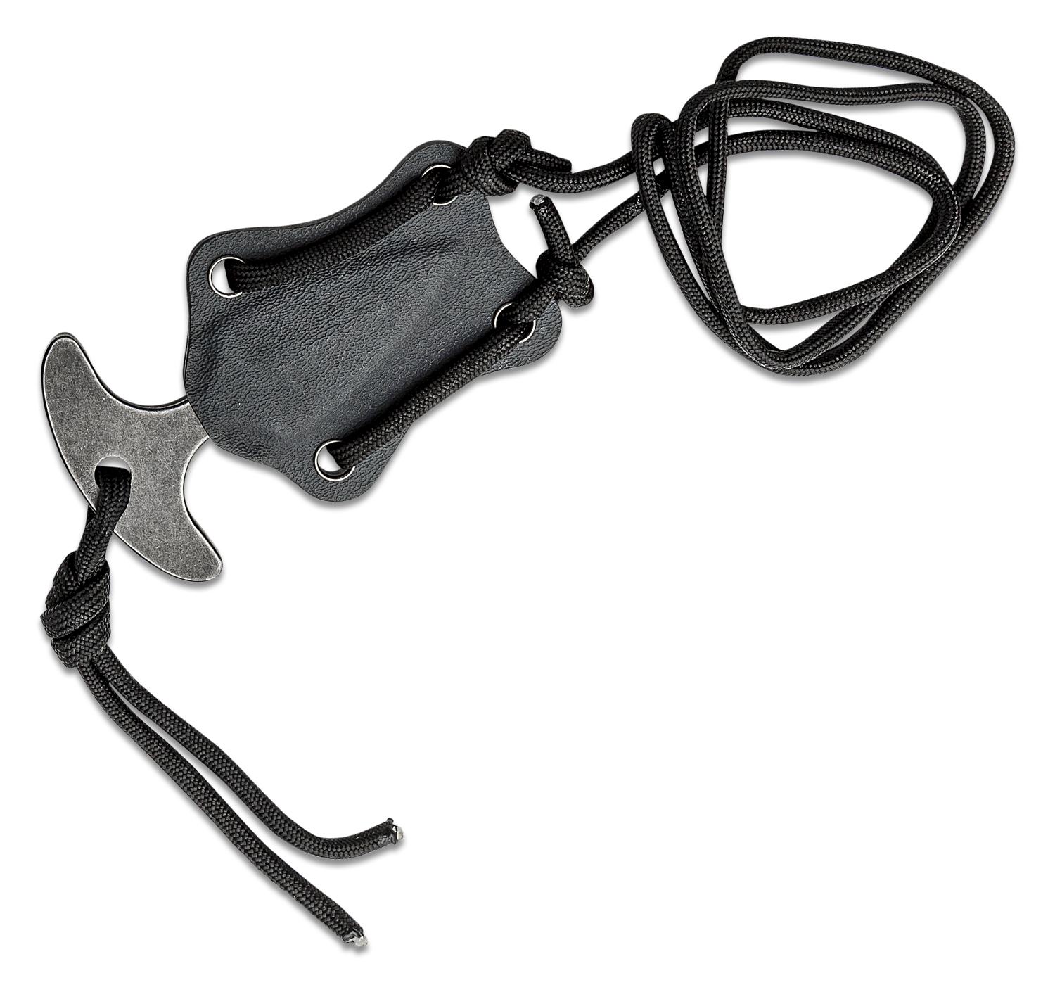 The Mini Push Dagger is one piece of solid 440C stainless steel with a black stonewashed finish for hiding scratches and incredible corrosion resistance. It's a very lightweight but incredibly strong design with deep finger recesses to protect your fingers during use. A friction fit Kydex sheath with included paracord for neck-carry allows this high-quality neck knife from Fred Perrin to easily make its way into your EDC rotation.