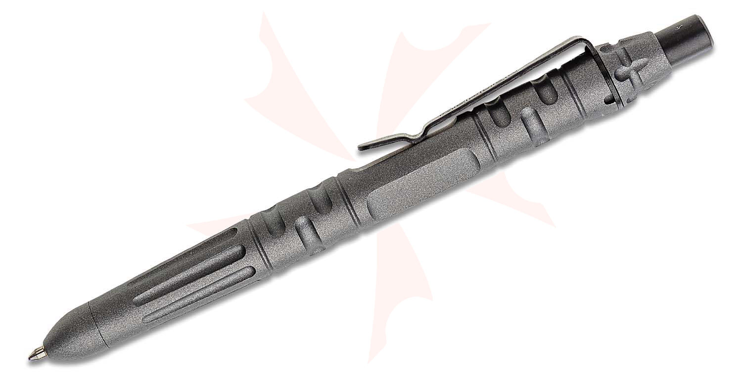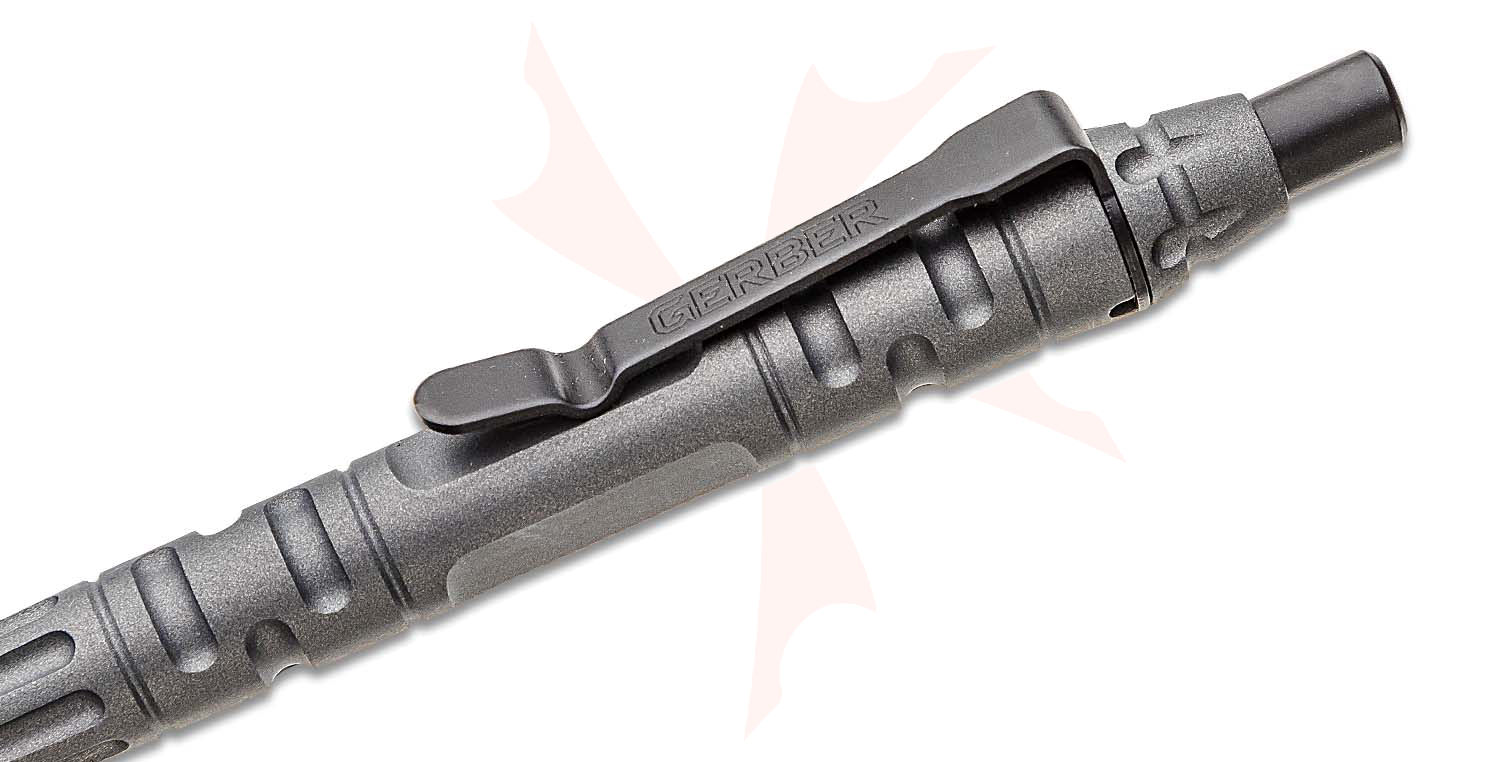 - Stainless steel pocket clip keeps the pen handy Integrated glass-breaker tip features tempered steel and is designed to get you out of trouble