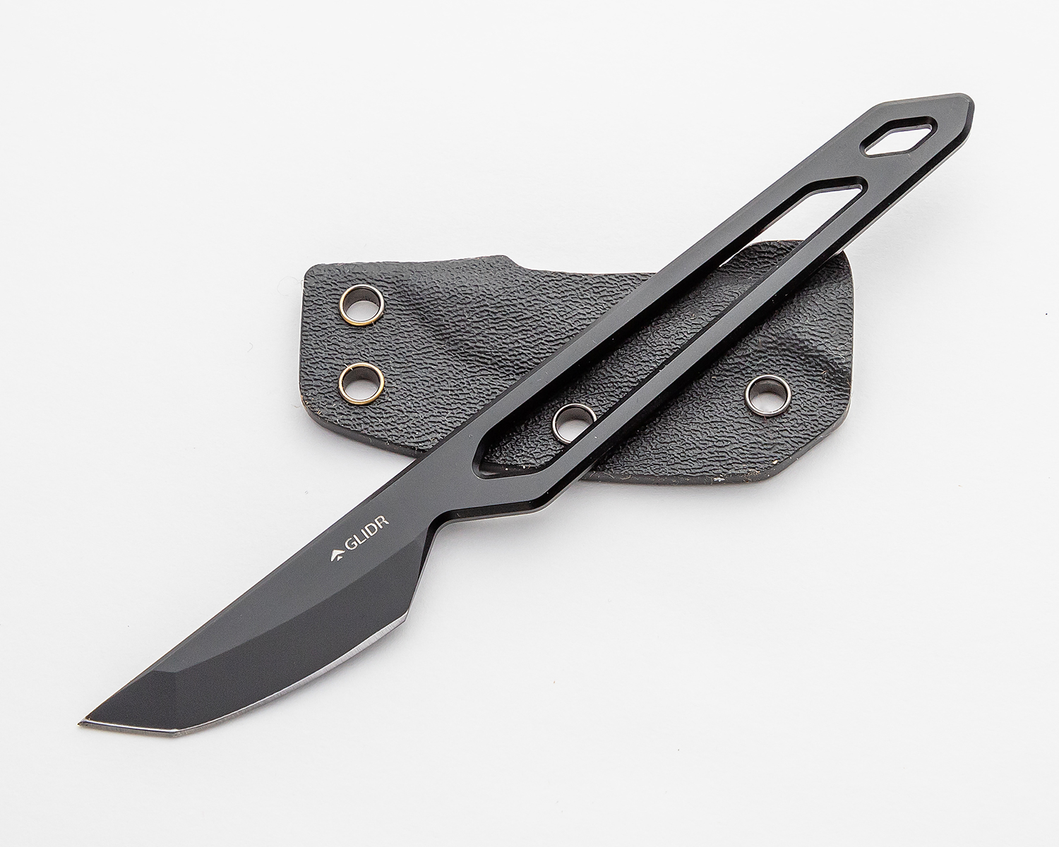 Glidr Sweeny Fixed Blade Neck Knife 1.65" S35VN Black PVD Tanto Blade and Skeletonized Handle, Kydex Sheath - SWNY-BLK