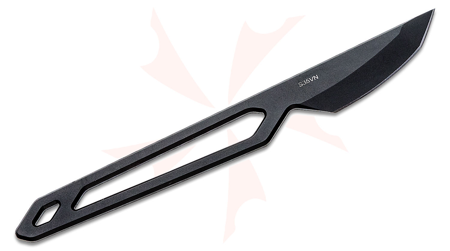The Sweeny fixed blade is a scalpel-style neck knife that exerts a sophisticated sense of style. It's simple yet beautiful and quite well set up for daily use. It's a solid piece of CPM-S35VN stainless with a tactical black PVD finish. Wrap the handle in a katana-style wrap and you'll really be onto something with the Sweeny.