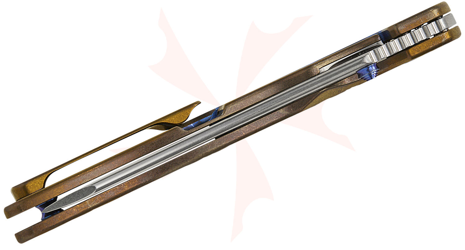 - Bronze with Blue Accents Anodized Titanium Handles