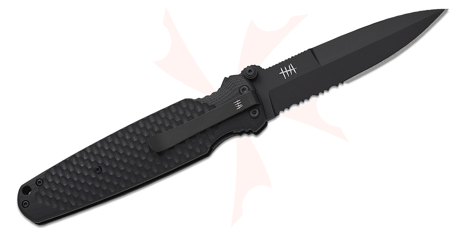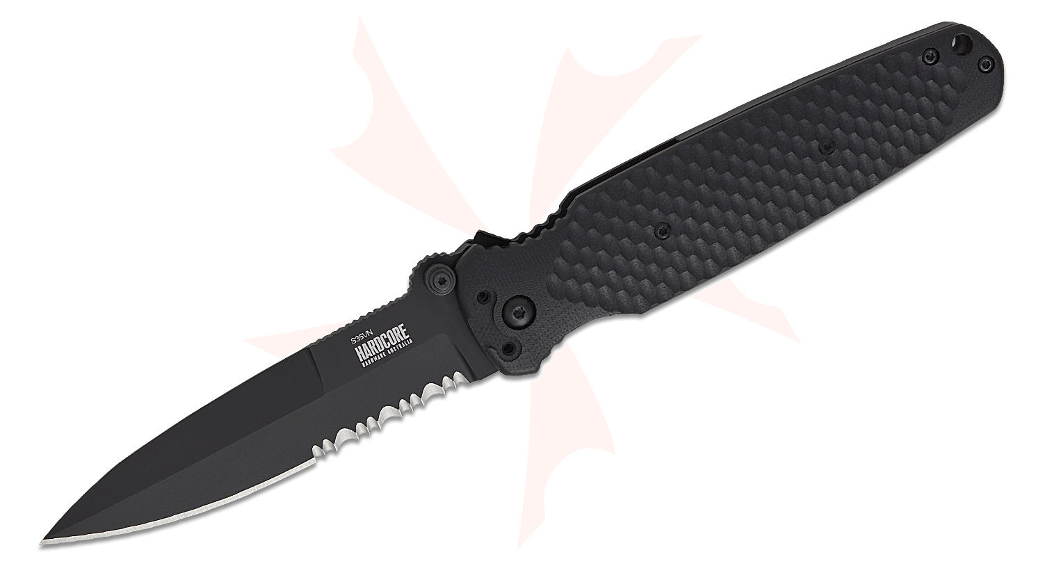 Hardcore Hardware COVERT 01 Folding Knife 3.85" CPM-S35VN Black PVD Spear Point Combo Blade, Textured Black G10 Handles, Reversible Clip, Liner Lock - COVERT 01 BLK/BLK