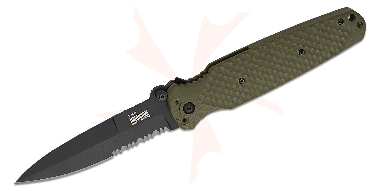 Hardcore Hardware COVERT 01 Folding Knife 3.85" CPM-S35VN Black PVD Spear Point Combo Blade, Textured Ranger Green G10 Handles, Reversible Clip, Liner Lock - COVERT 01 OD/BLK