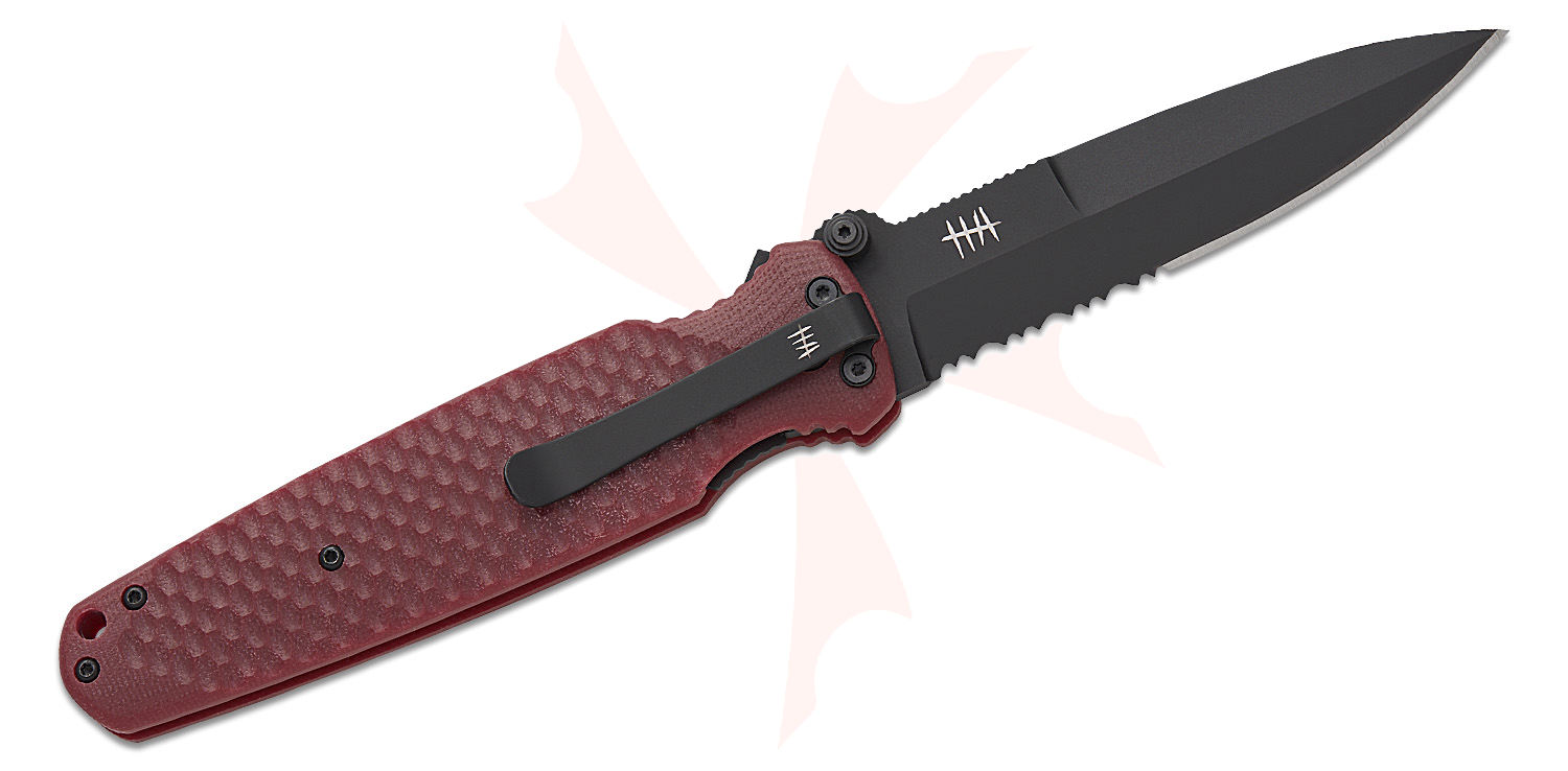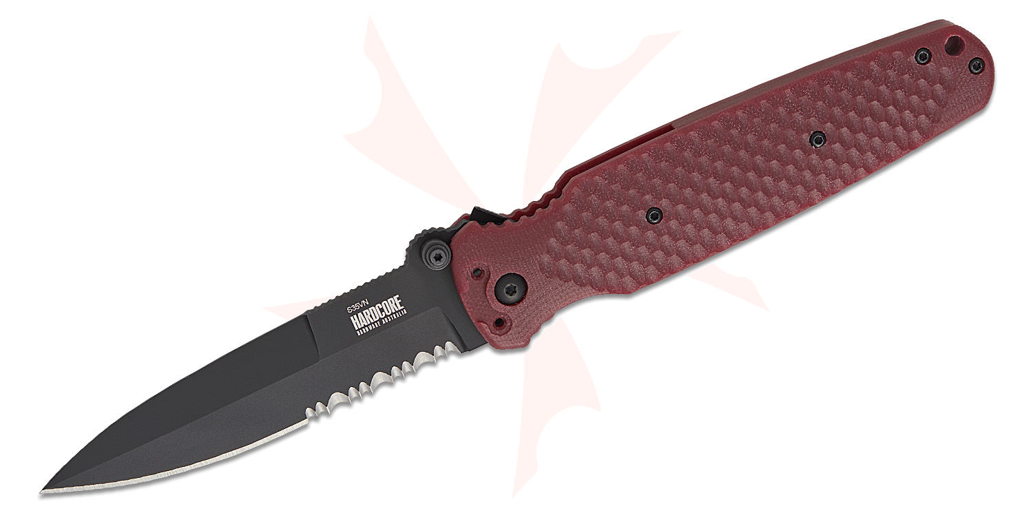 Hardcore Hardware COVERT 01 Folding Knife 3.85" CPM-S35VN Black PVD Spear Point Combo Blade, Textured Red G10 Handles, Reversible Clip, Liner Lock - COVERT 01 RED/BLK
