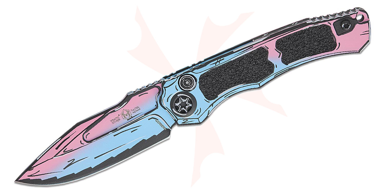 Heretic Knives Wraith V4 AUTO Folding Knife 3.625" CPM-MagnaCut Cotton Candy Cel Shade Clip Point Blade and Aluminum Handles with 3M Traction Tape Inserts, Reversible Clip - H000-CS-CC