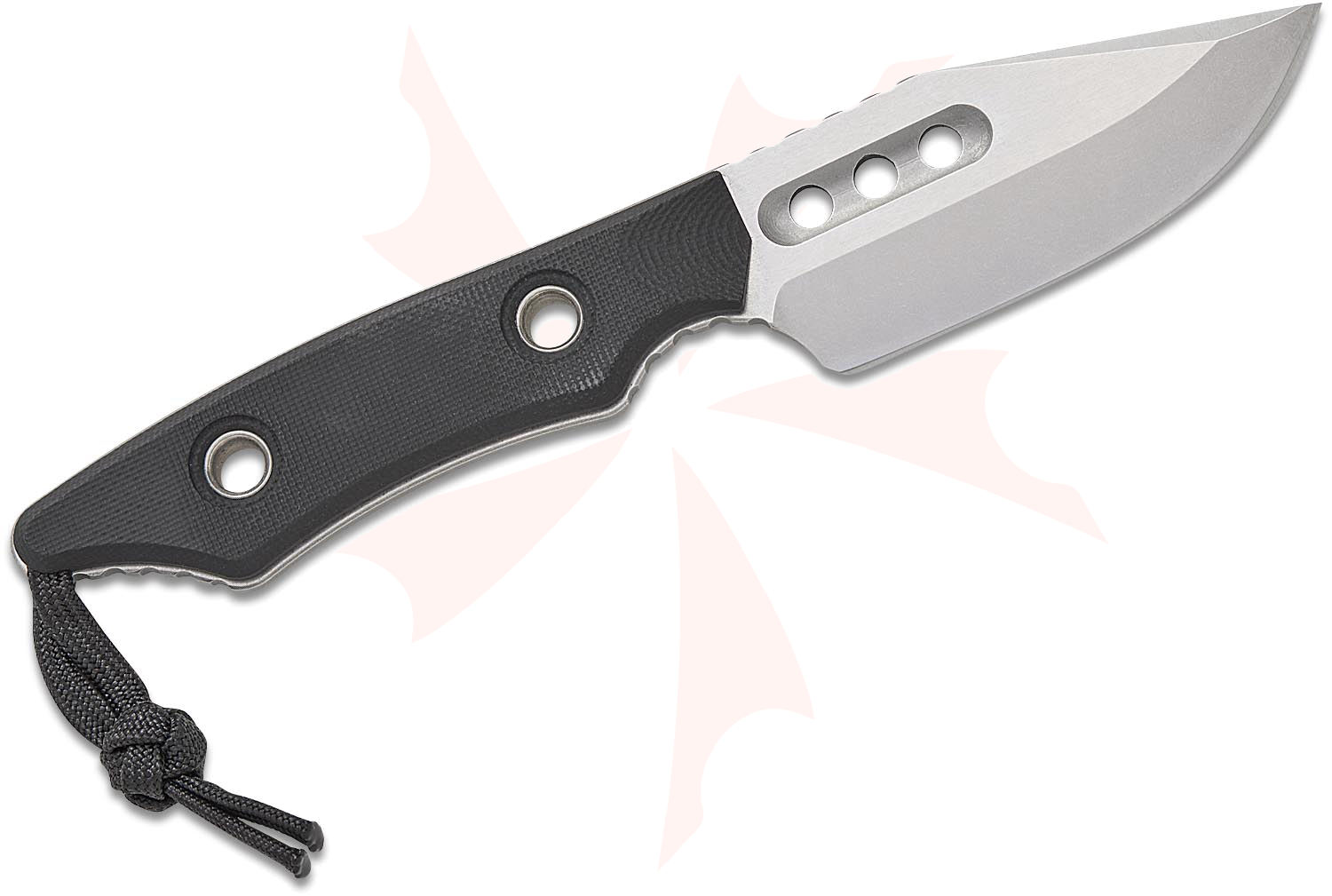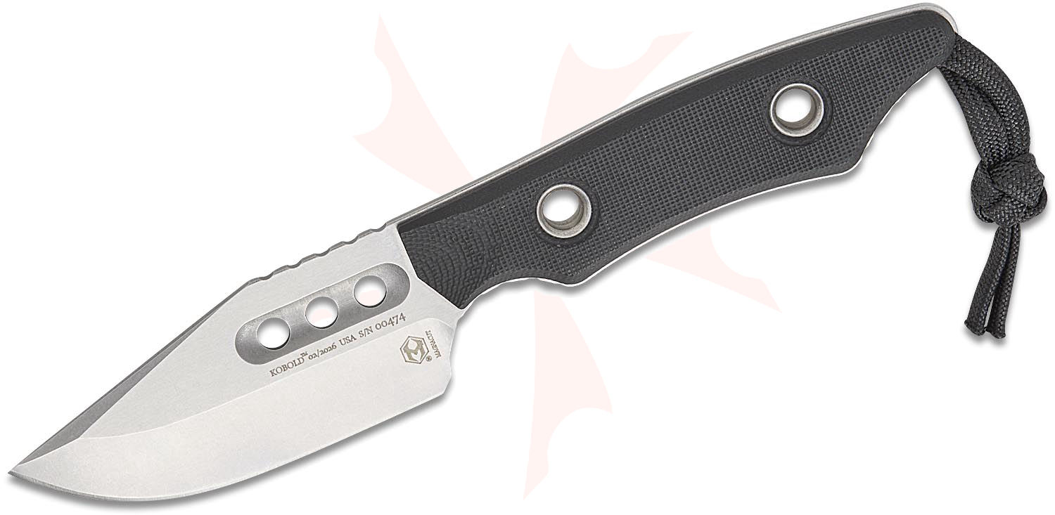The Kobold is an extremely versatile design primed for use right out of the box. It features a wide Bowie blade with a jimped thumb ramp and a nice finger guard, letting you get right up on the blade edge. Its wide design makes for effortless slicing, while a fuller with machined holes all the way through reduces weight and drag while puncturing. The G10 handle is tapered toward the butt end for a comfortable hold in a number of grips and easy indexing. Its piped construction allows for lashing the knife to a lashing to a pole, but not for removal, and the knife includes a high-quality leather belt sheath that supports ambidextrous carry. This knife shines under hard-use scenarios and is able to be your one-and-only, go-to fixed blade in the field.