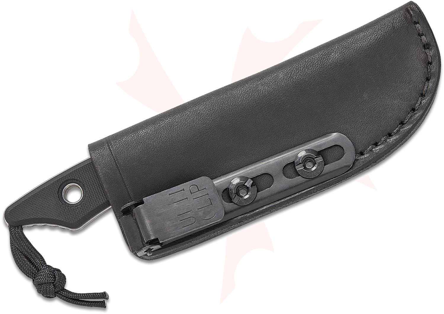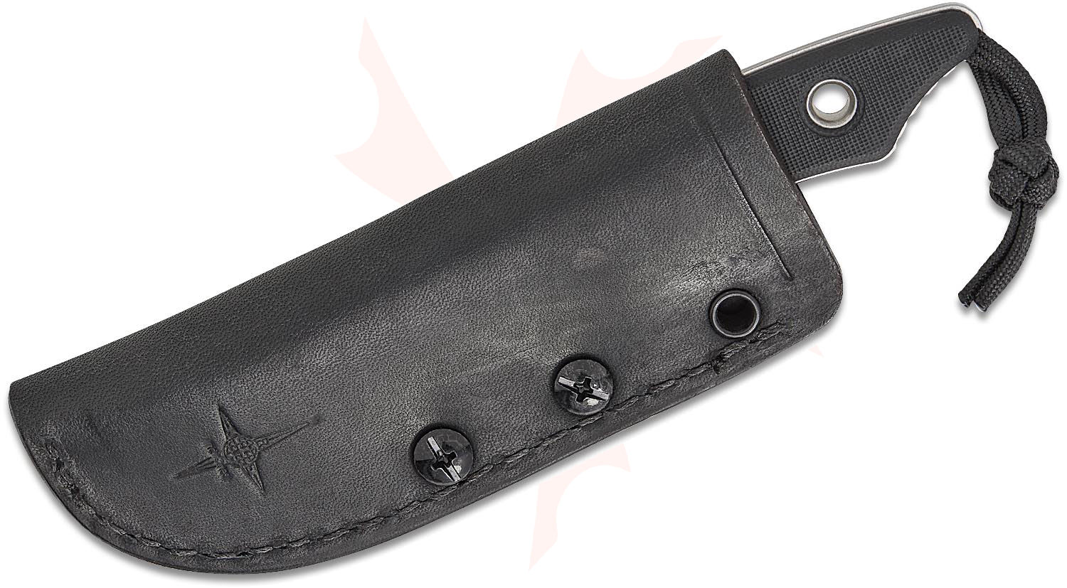 Heretic Knives Kobold Pocket Fixed Blade Knife 2.625" CPM-MagnaCut Stonewashed Bowie Plain Blade, Black G10 Handles, Leather Sheath - H065-2A-BLK-G10