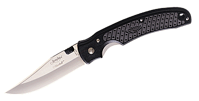 JU2043 Marshall� Zytel� Plain Edge 3-5/8" Blade and 4-7/8" Closed AUS-10 � 2.8 Ounces The Marshall� Collection They devote their lives to defend the law and protect the innocent. Whether on horse, on foot, or behind the wheel of a high-performance police cruiser, the men and women of law enforcement inspire us all. The richly detailed Marshall� false-edged clip point folder delivers the speed, the control and the strength and durability that today�s police professionals demand. Made in Seki, Japan from high-molybdenum AUS-10 or ATS-34 modified stainless steel, this ambidextrous fast folder offers a tough cutlery-grade stainless steel or light weight Zytel� scale that is contoured to provide a natural, immediate grip. The steel belt clip on models JU2013 and JU2014 can be reversed for left or right side wear. Available in razor, semi-serrated or serrated blade styles. Designed by S. Balolia. Patent Pending.