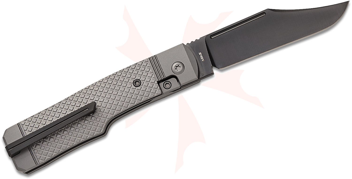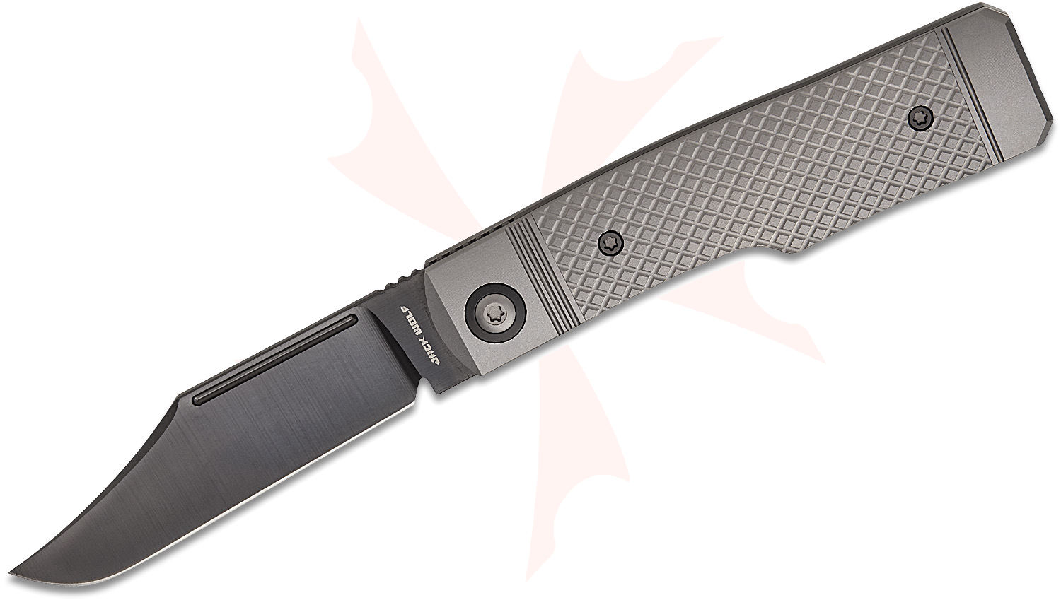 Jack Wolf Knives Gunslinger Jack Traditional Bolster Lock Front Flipper Knife 3.21" CPM-S90V Black DLC Clip Point Blade, Glass Blasted Bolstered Titanium Handles with Cross Hatch Titanium Scales, DLC Accents - GUNSL-03-TI-XHATCH