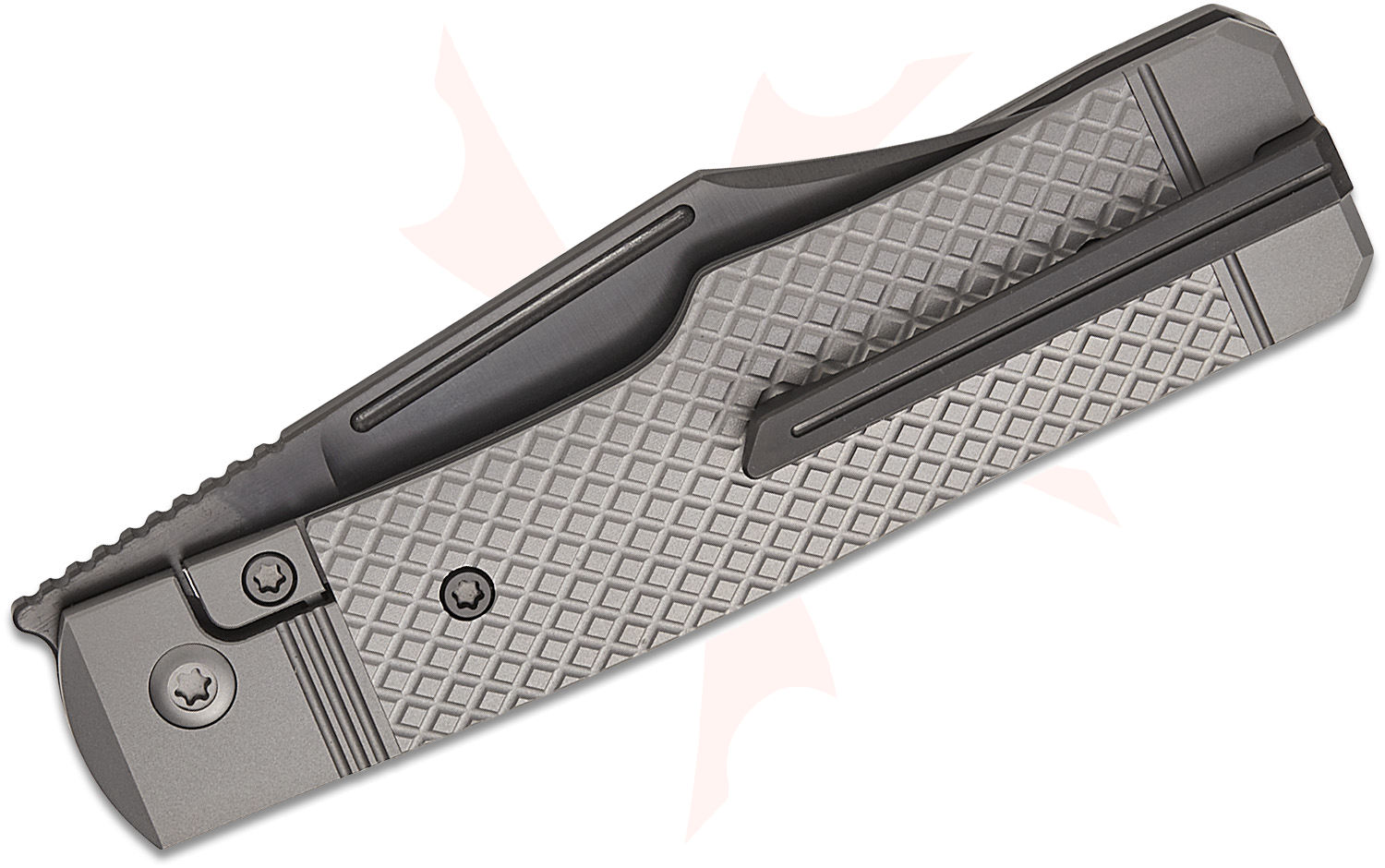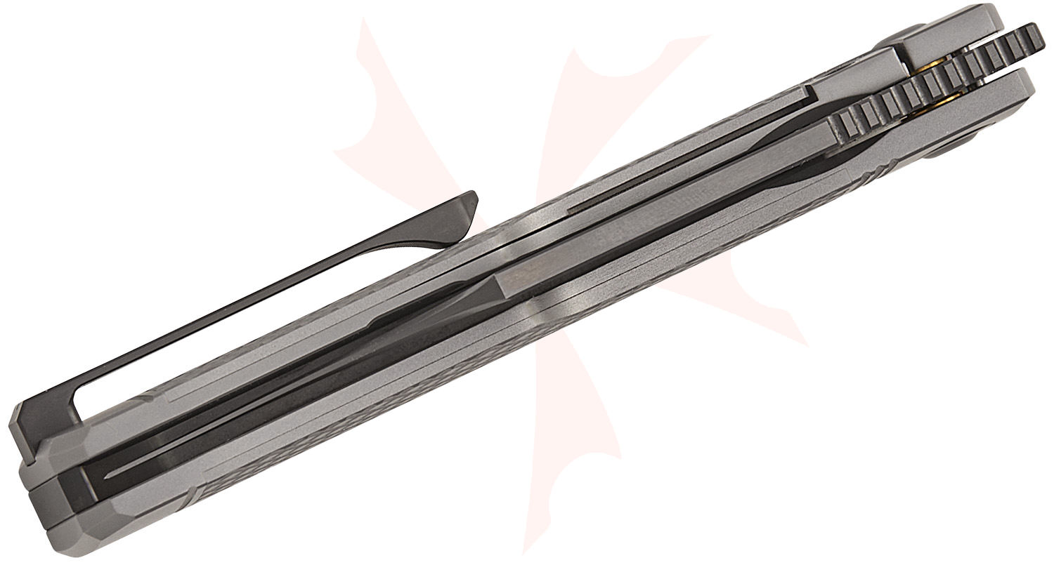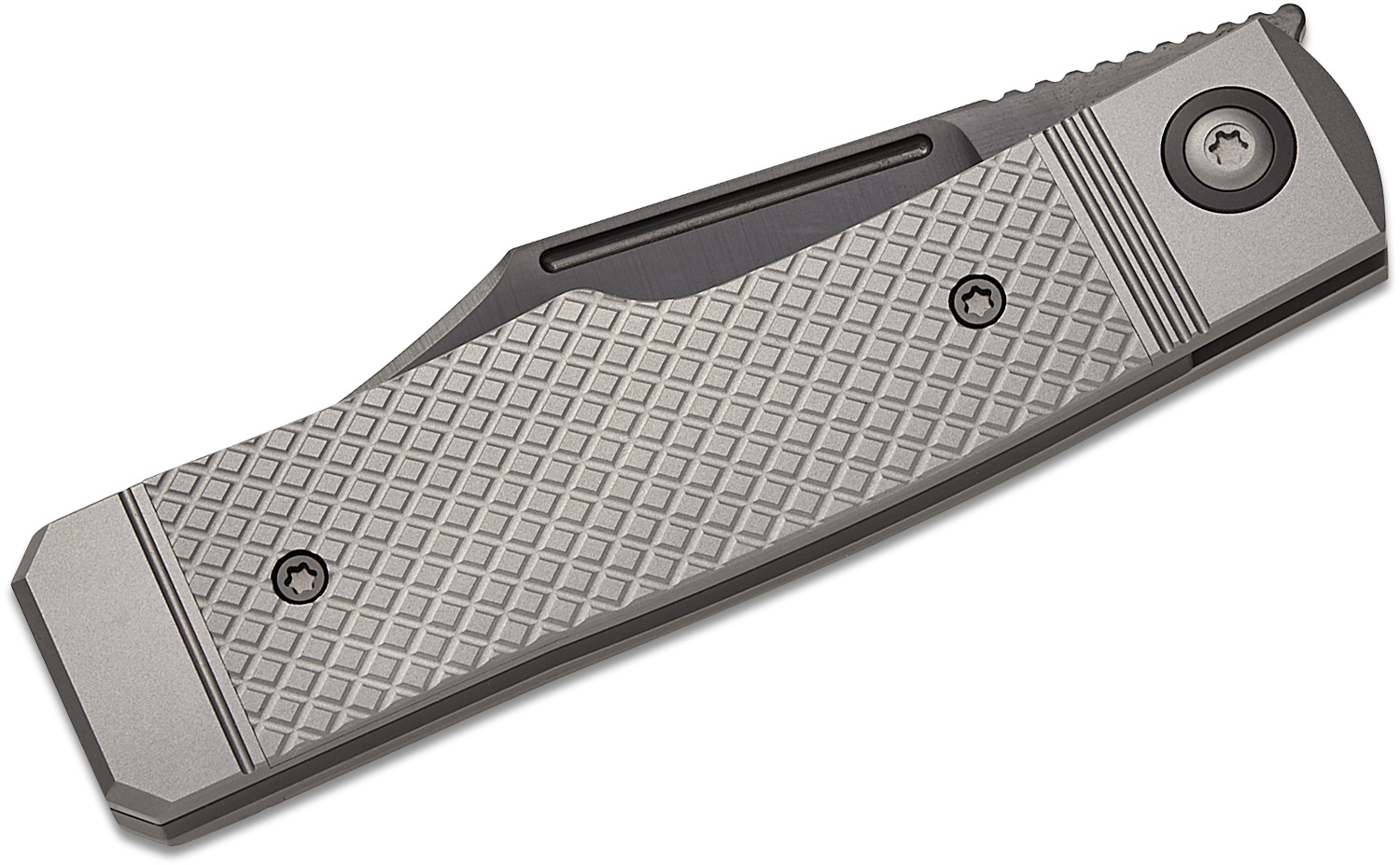- Handle Material: Glass Blasted Bolstered 6Al4V Titanium with Cross Hatch Titanium Scales
