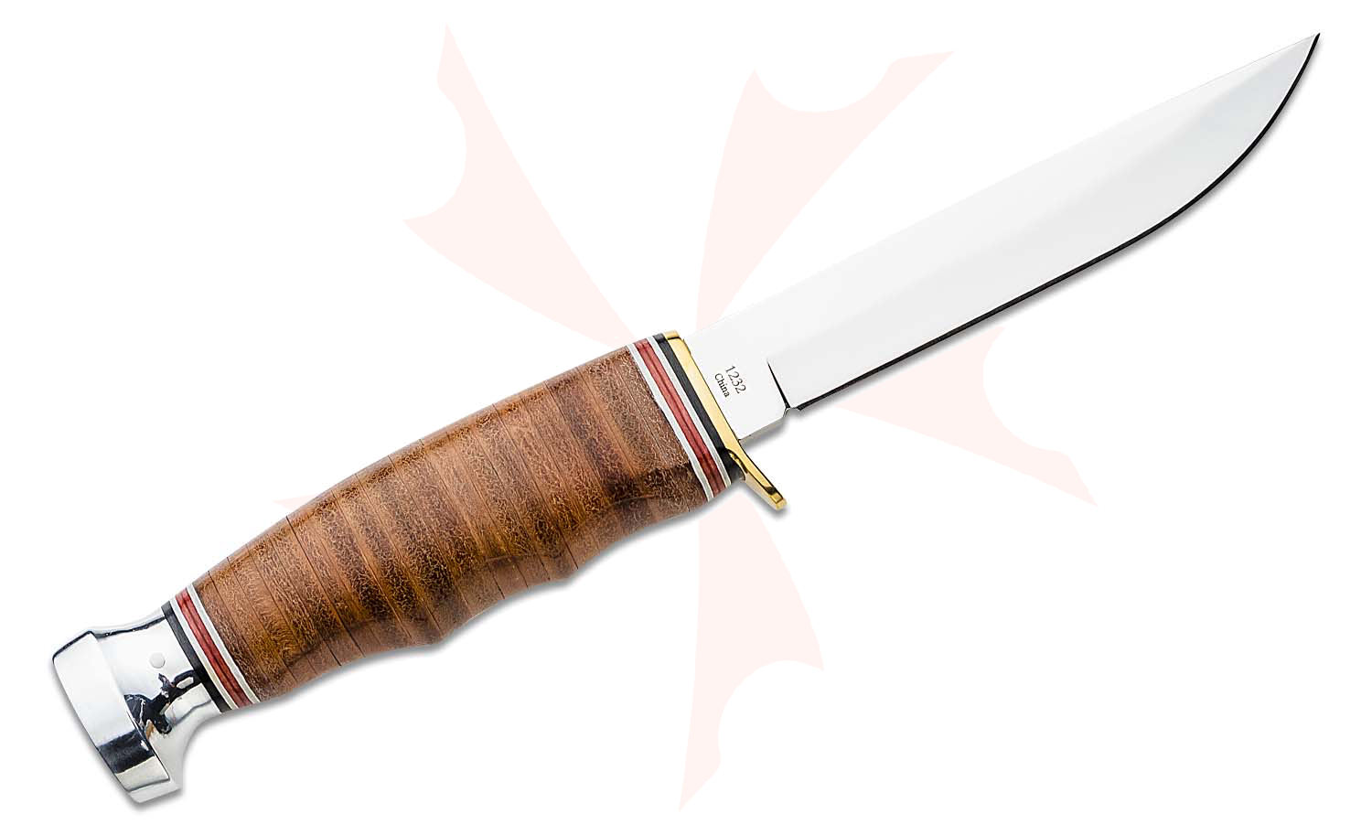 Dressy enough to give as a gift and practical for field use. Features a stacked leather handle with finger grips. This beautiful finished knife features polished stacked leather handles, stainless steel blade, brass guard and aluminum butt cap and has been a favorite of outdoormen since the early 1900's.