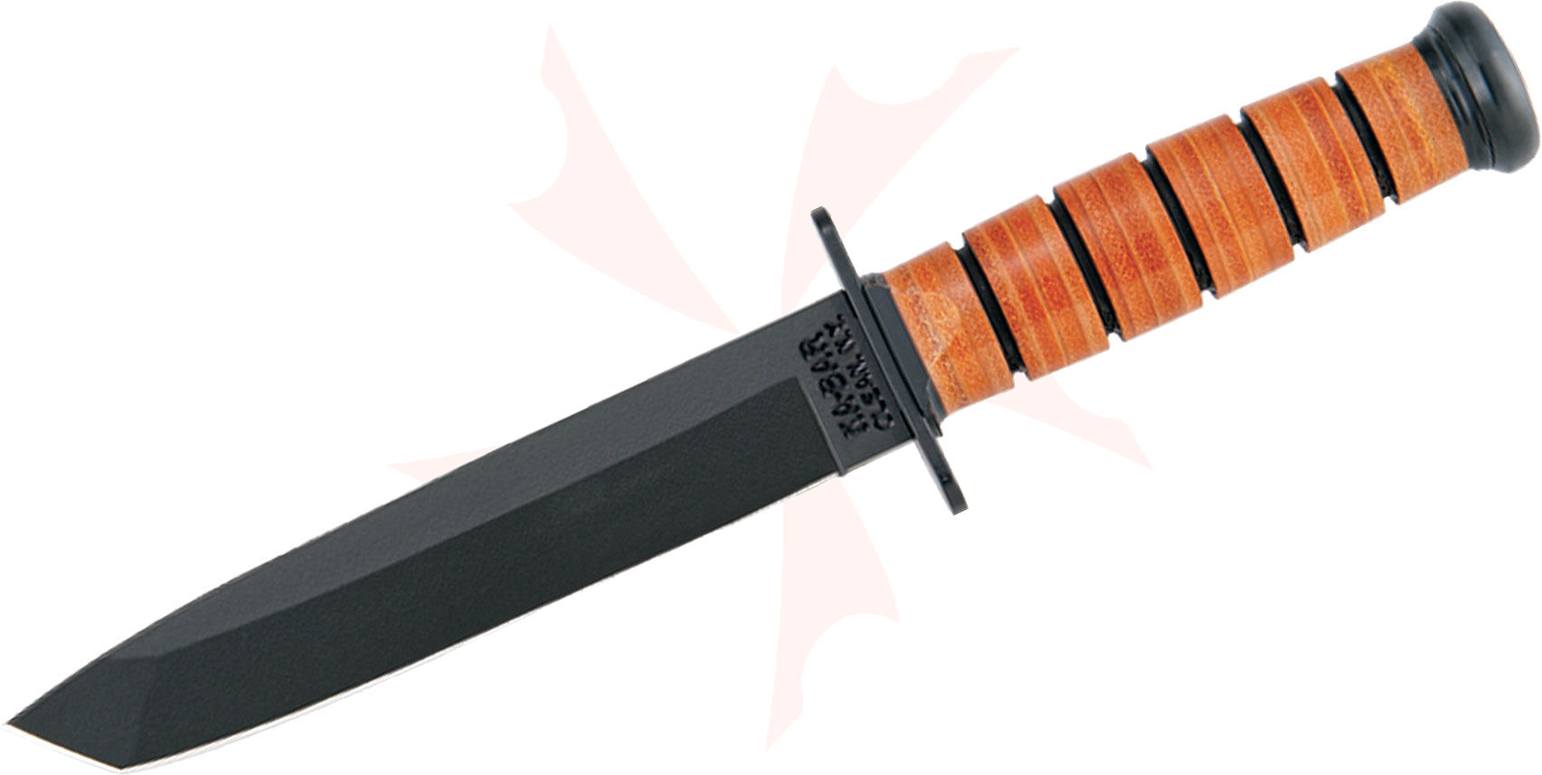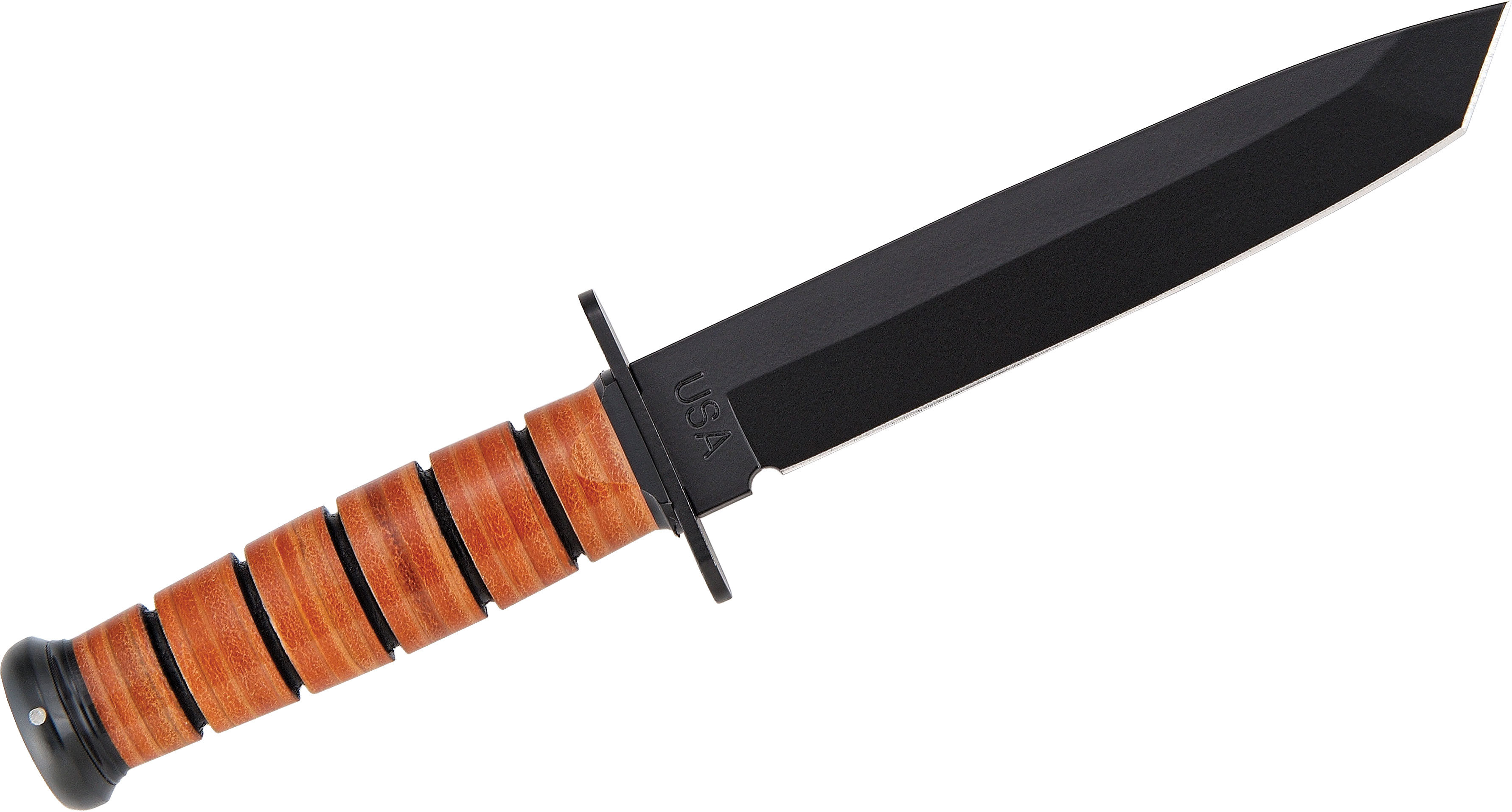 KA-BAR 1264 USA Tanto Fighting Knife 7" Plain Blade, Leather Handles, Kydex Sheath