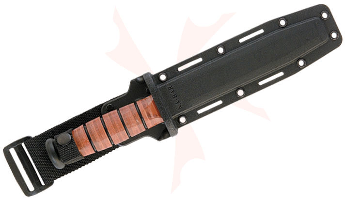 The most famous fixed blade knife in the World - "the KA-BAR" - was designed to serve our troops during World War II and is still doing its job, with honors, more than 50 years later. The Tanto blade shape, of Asian influence, has a thick pointed blade that's good for penetration. Coupled with a classic leather stacked handle and Kydex sheath, this knife is designed for the toughest of tasks.