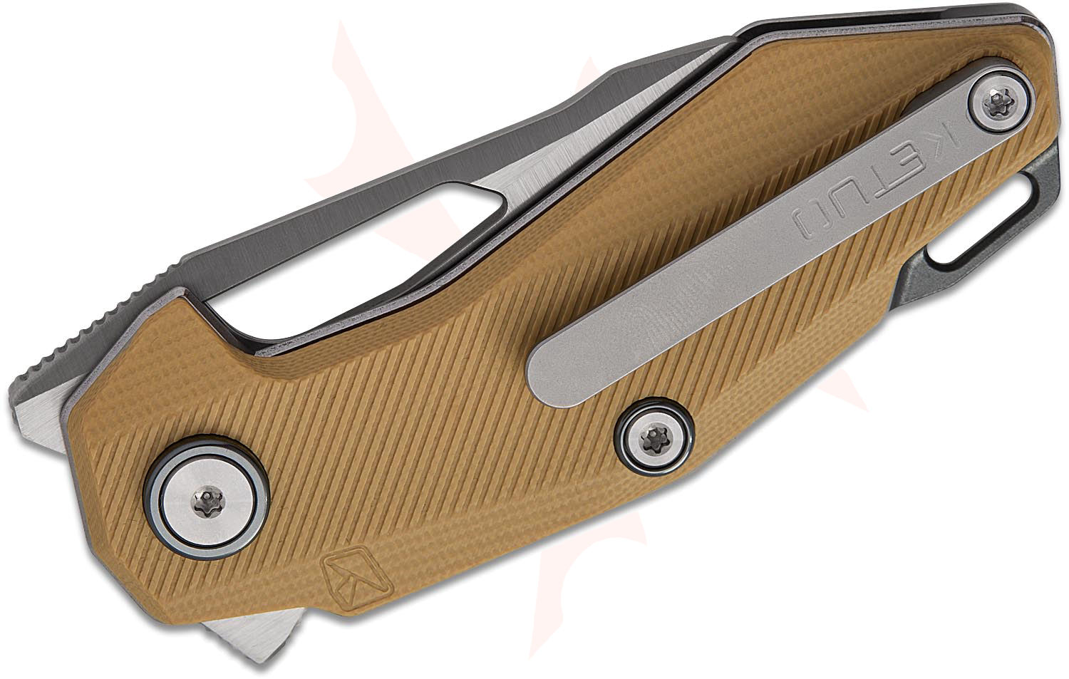 Ketuo Knife Thorn V2 Liner Lock Flipper Knife 2.05" 14C28N Satin Cleaver Blade, Tan G10 Handles - KT-Thorn BRN/S