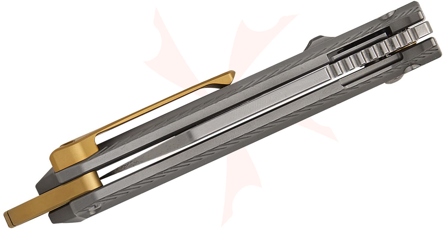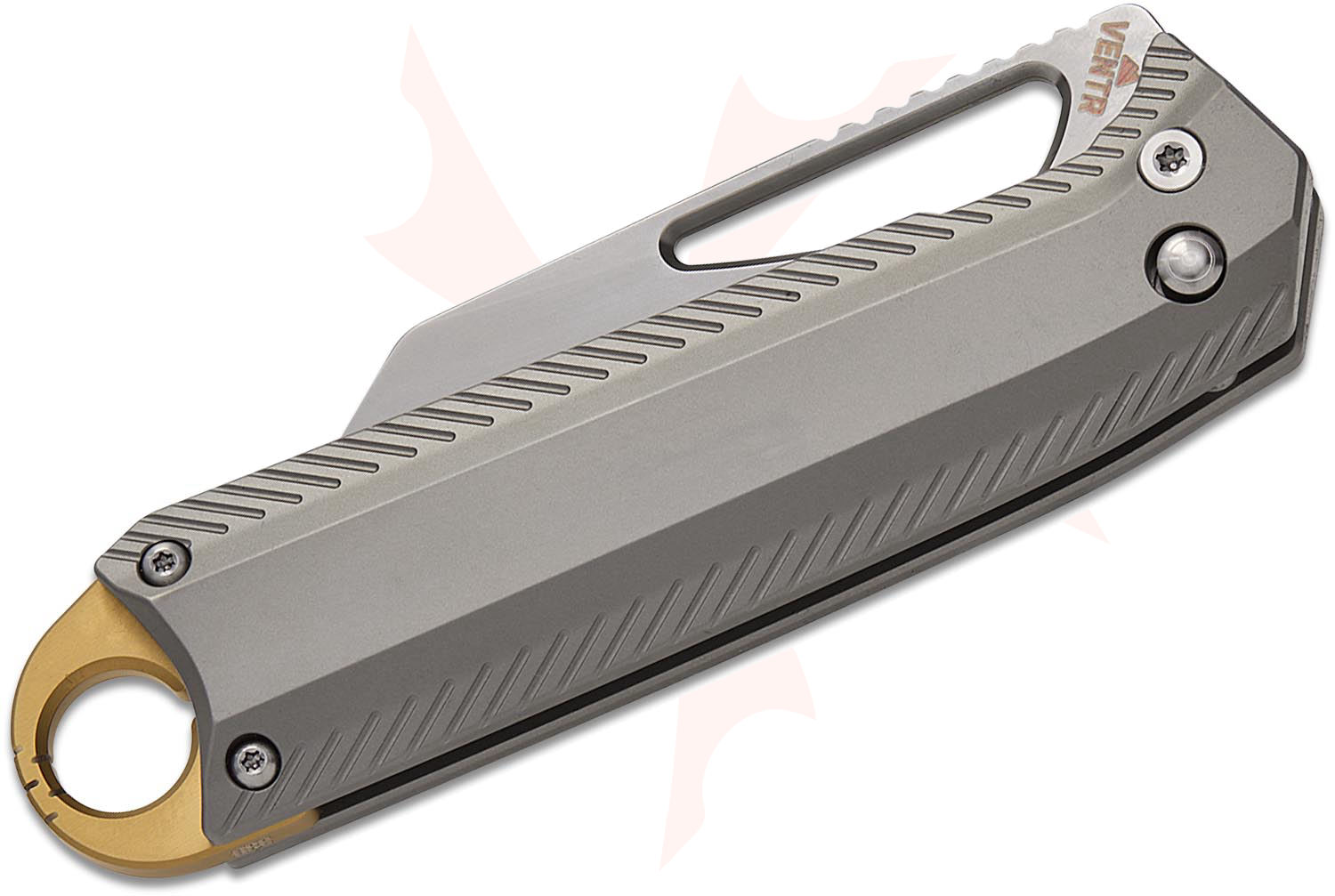 KETVEN4GP: Ventr V4 Folding Knife - Satin/Bead Blast Titanium, Gold Accents