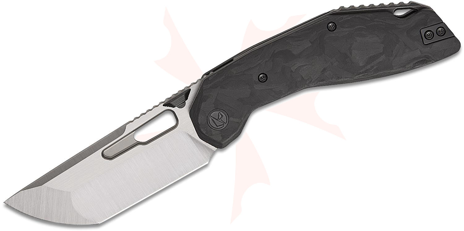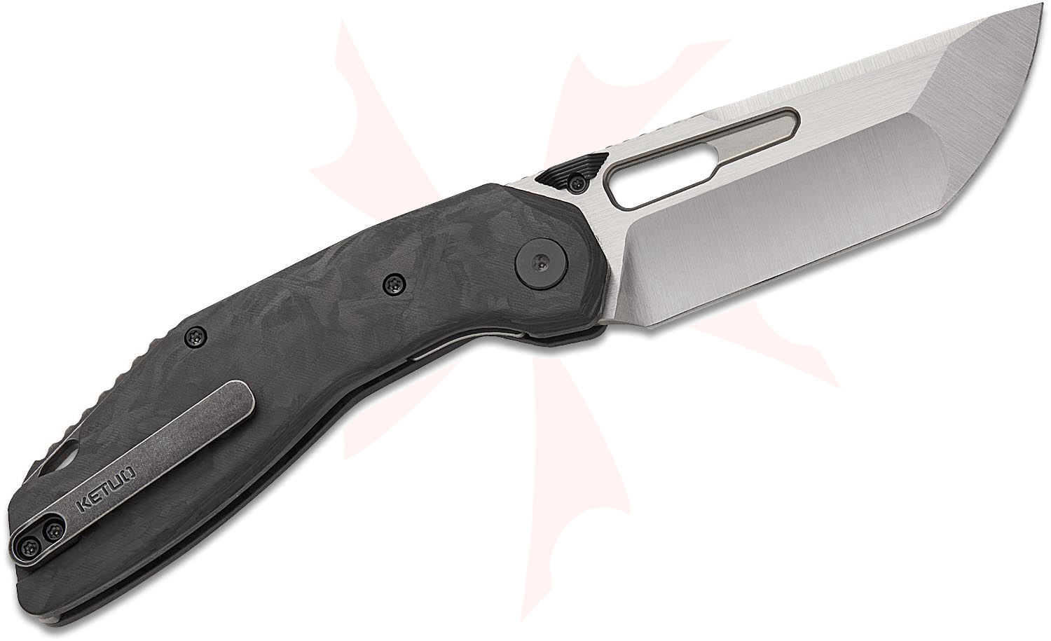 Ketuo Knife Yakuza CF Liner Lock Front Flipper Knife 3.34" 154CM Satin Modified Tanto Blade, Marble Carbon Fiber Handles - KT-YAKUZA CF BK/S
