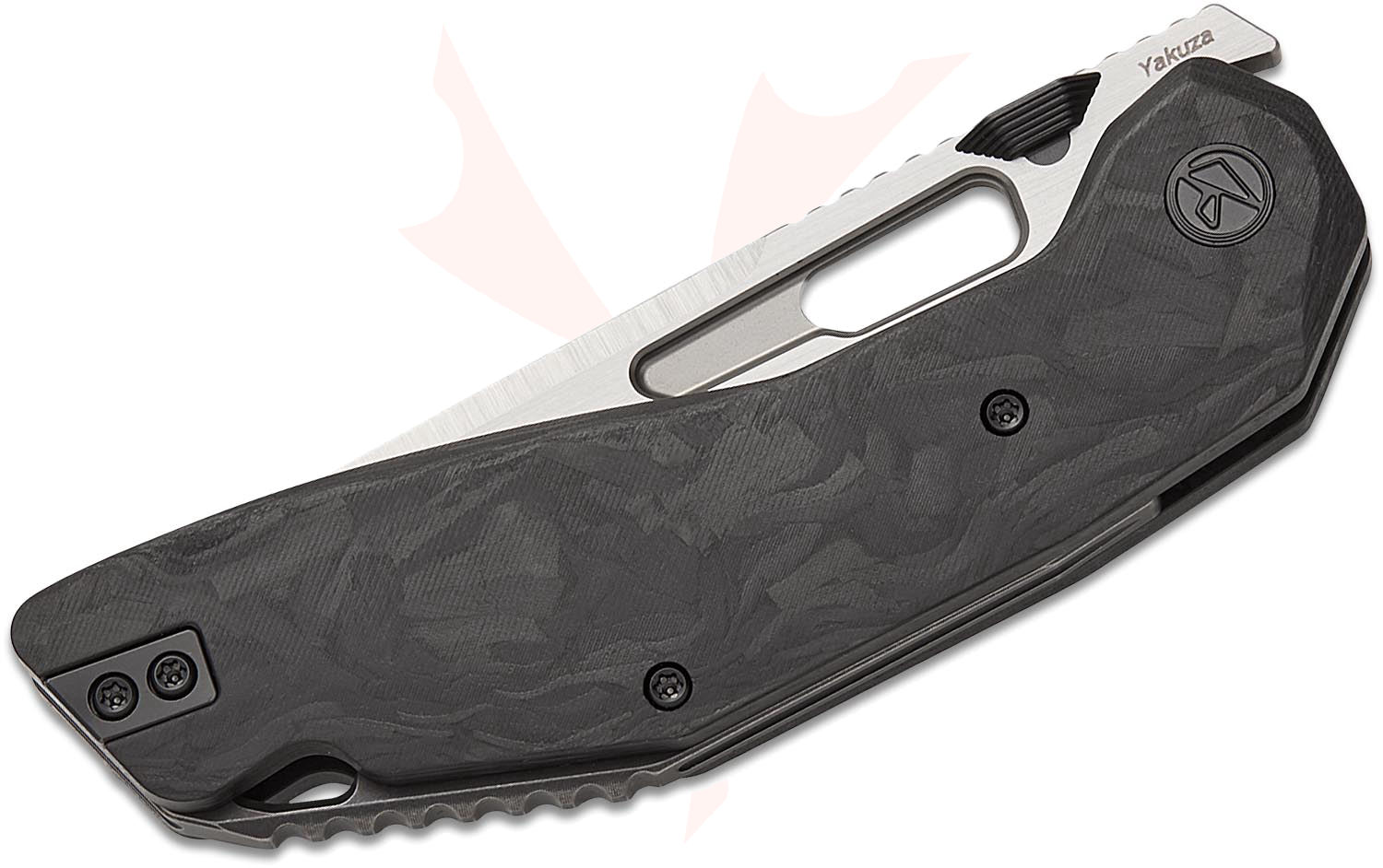 The Yakuza CF features a 3.34" modified tanto blade forged from 154CM stainless steel for great performance and excellent corrosion resistance. The 4.52" handle is meticulously crafted from marble carbon fiber with mild texturing. This refined accent adds a touch of elegance that contrasts beautifully with the knife's aggressive, modern lines. Mechanical precision is a priority, as the Yakuza utilizes a ceramic ball-bearing pivot for smooth, effortless deployment and a rock-solid liner lock for secure blade retention.