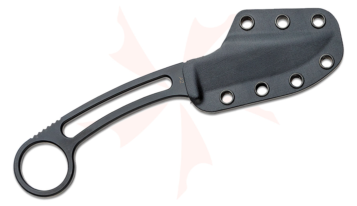 Knight Elements The Element Fixed Blade Knife 3" A2 Black Nitride Recurve Harpoon Blade and Skeletonized Handle with Pinky Ring, Kydex Sheath with MAD Strap - EL_FX_BK