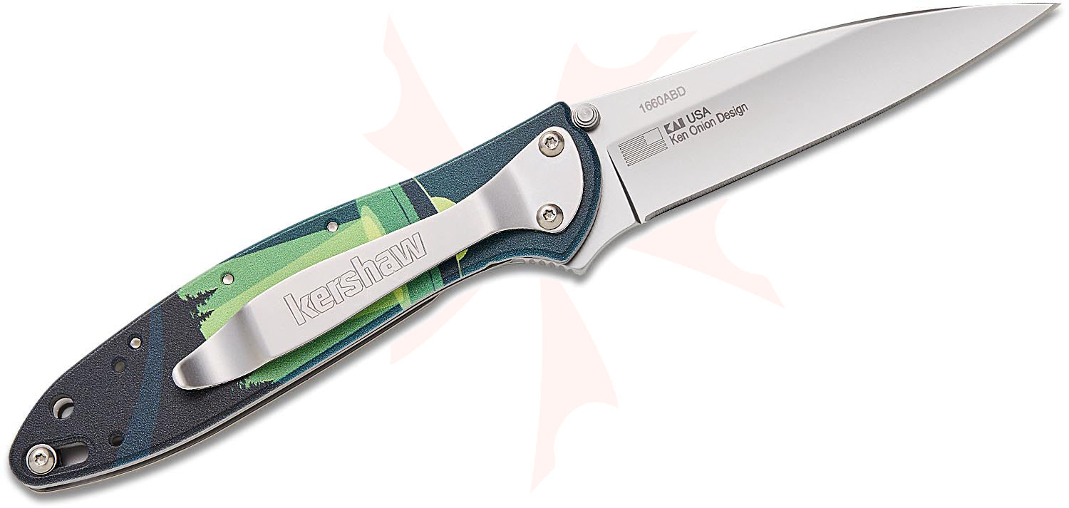 Kershaw 1660ABD Ken Onion Leek Assisted Liner Lock Flipper Knife 3" 14C28N Bead Blast Plain Blade, Abduction CCI Aluminum Handles