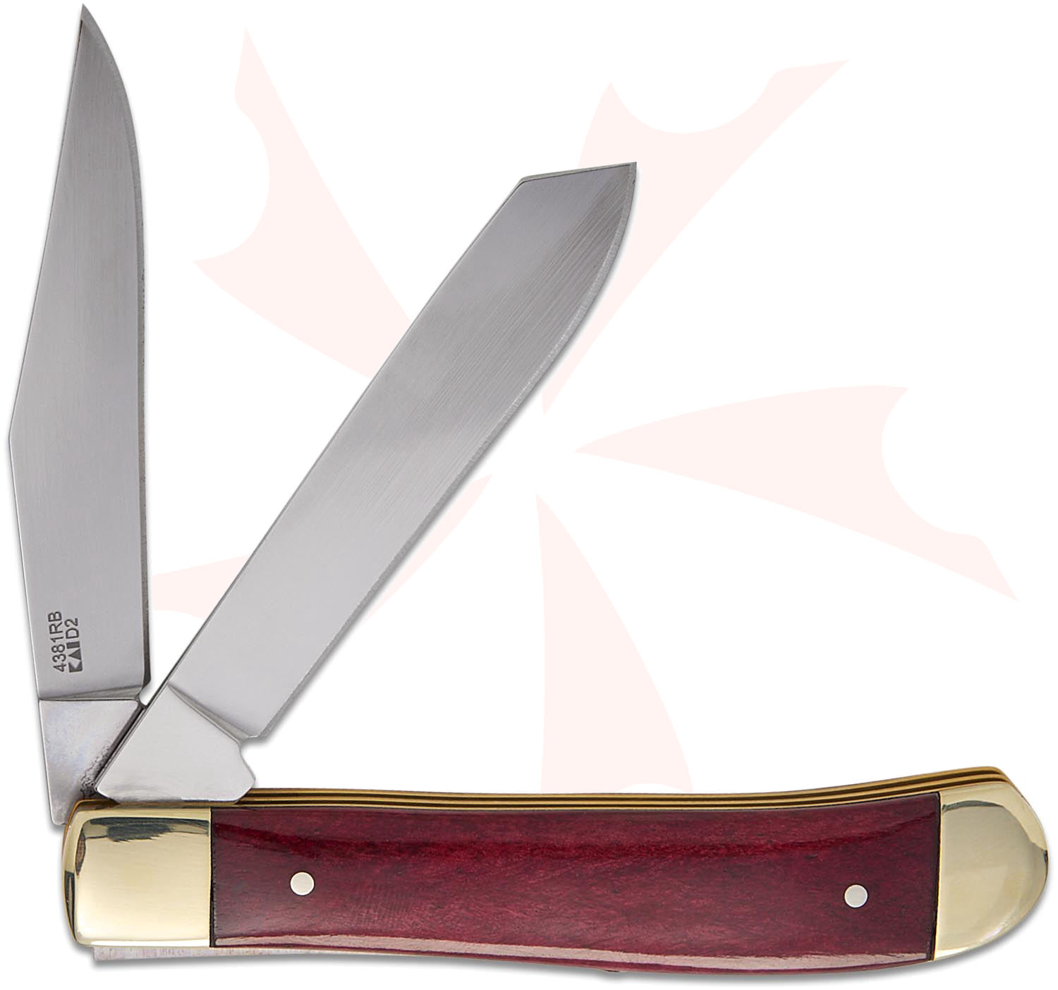 Blending time-honored craftsmanship with modern performance, the Gadsden folding knife delivers a refined take on a traditional slipjoint design. This classic two-blade knife features a versatile clip point and spey blade, both crafted from durable D2 tool steel for excellent wear resistance and long-lasting cutting performance at a practical value. Its handle showcases beautifully smooth red bone scales, carefully shaped and polished to highlight their natural luster while preserving an authentic, vintage character. Brass bolsters add warmth and durability to the profile, while brass liners and rivets provide a subtle contrast and an extra touch of elegance. The result is a dependable everyday carry knife that honors classic pocket knife heritage while offering the reliable materials and craftsmanship modern users expect.
