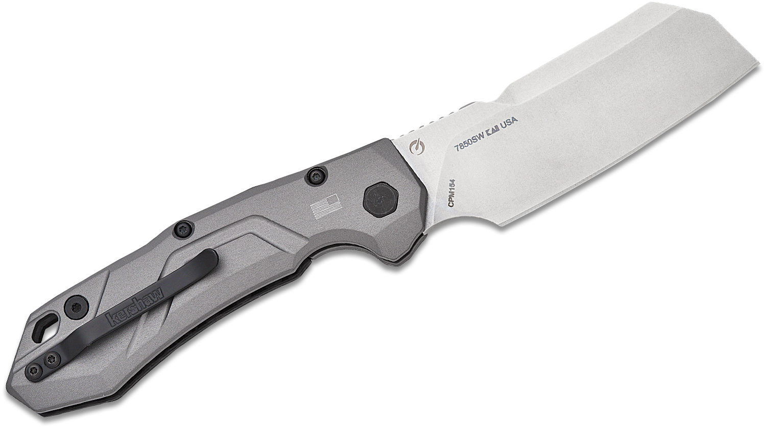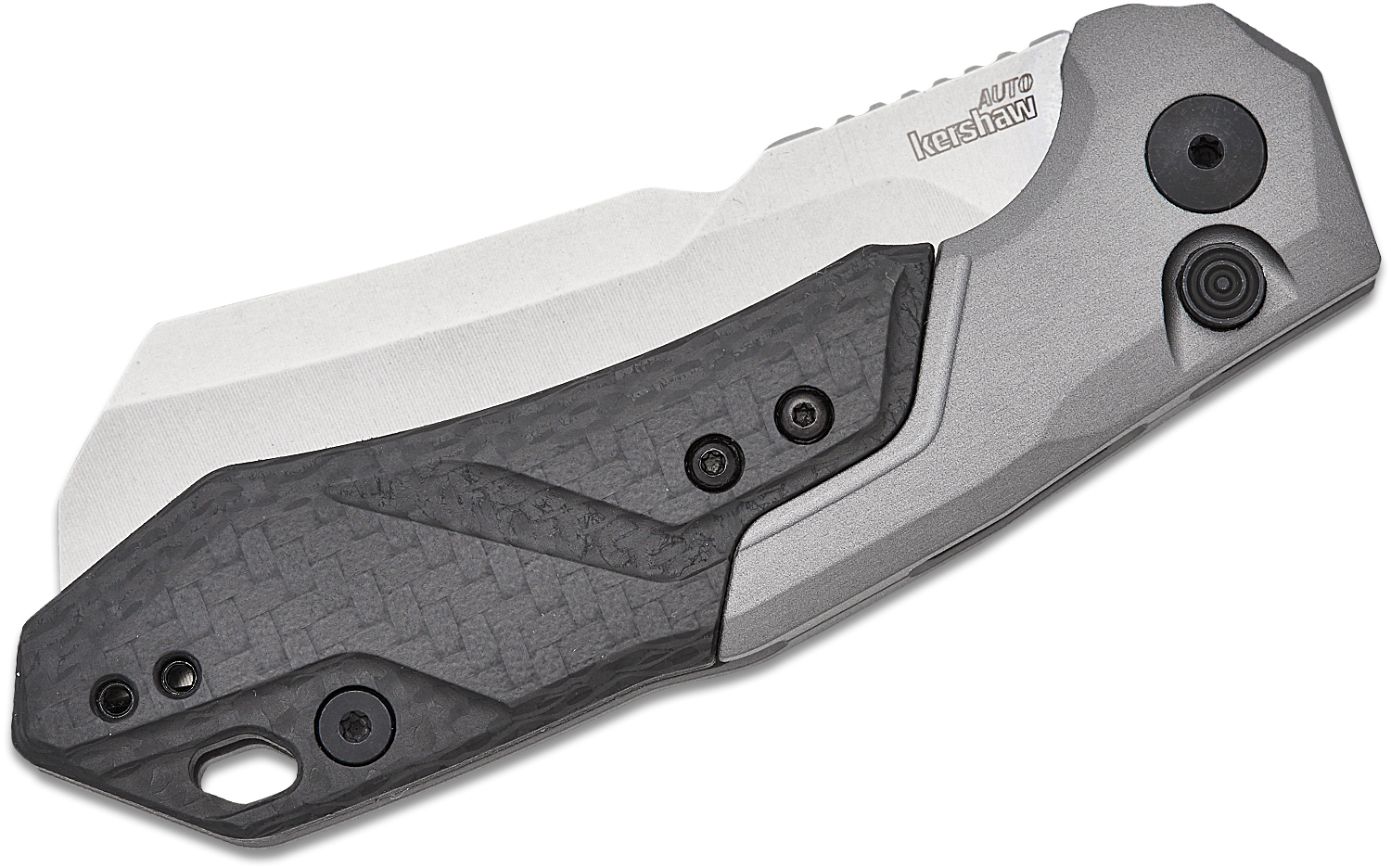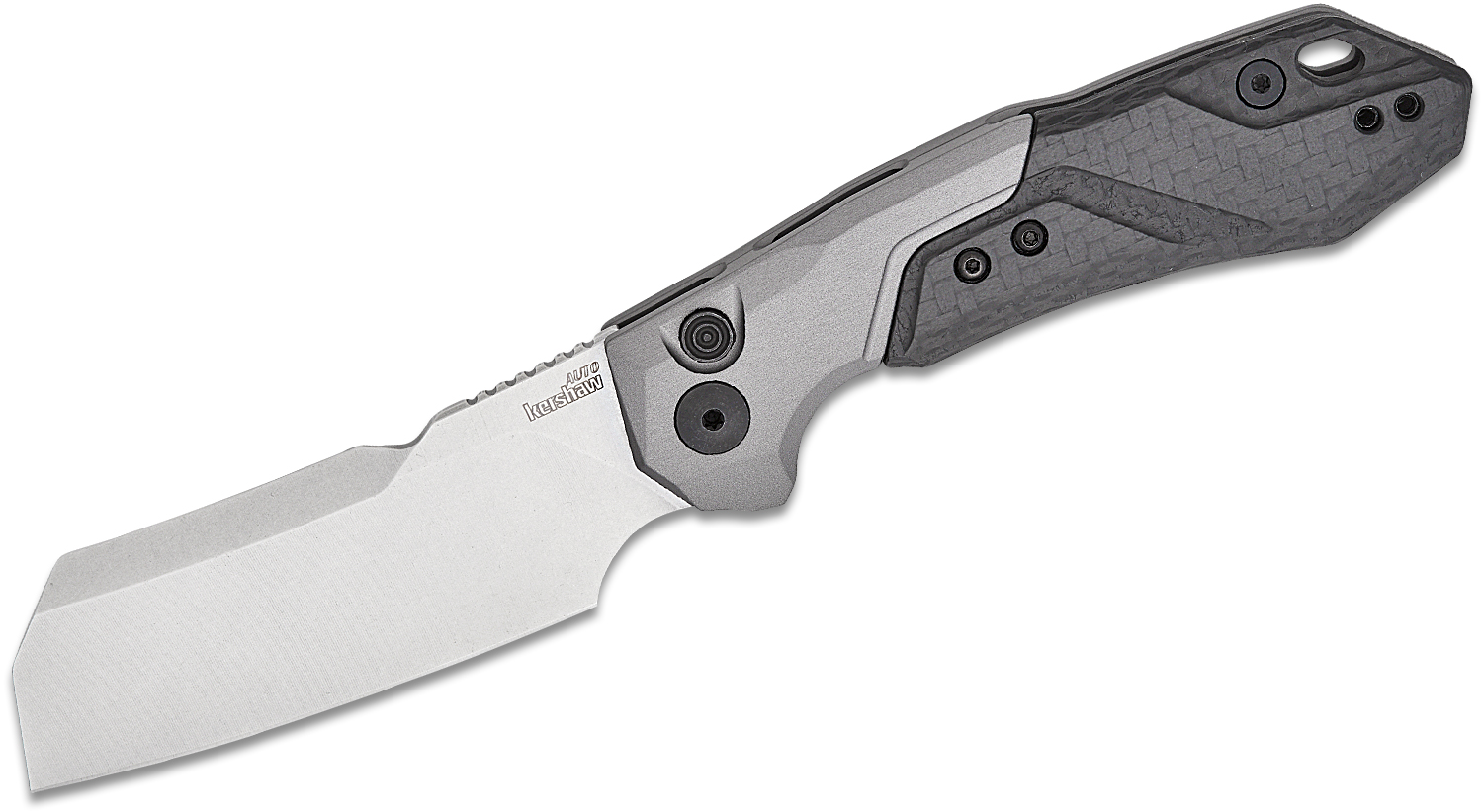 Kershaw 7850 Launch 14 AUTO Folding Knife 3.375" CPM-154 Stonewashed Cleaver Blade, Anodized Aluminum Handles with Carbon Fiber Scale - 7850SW