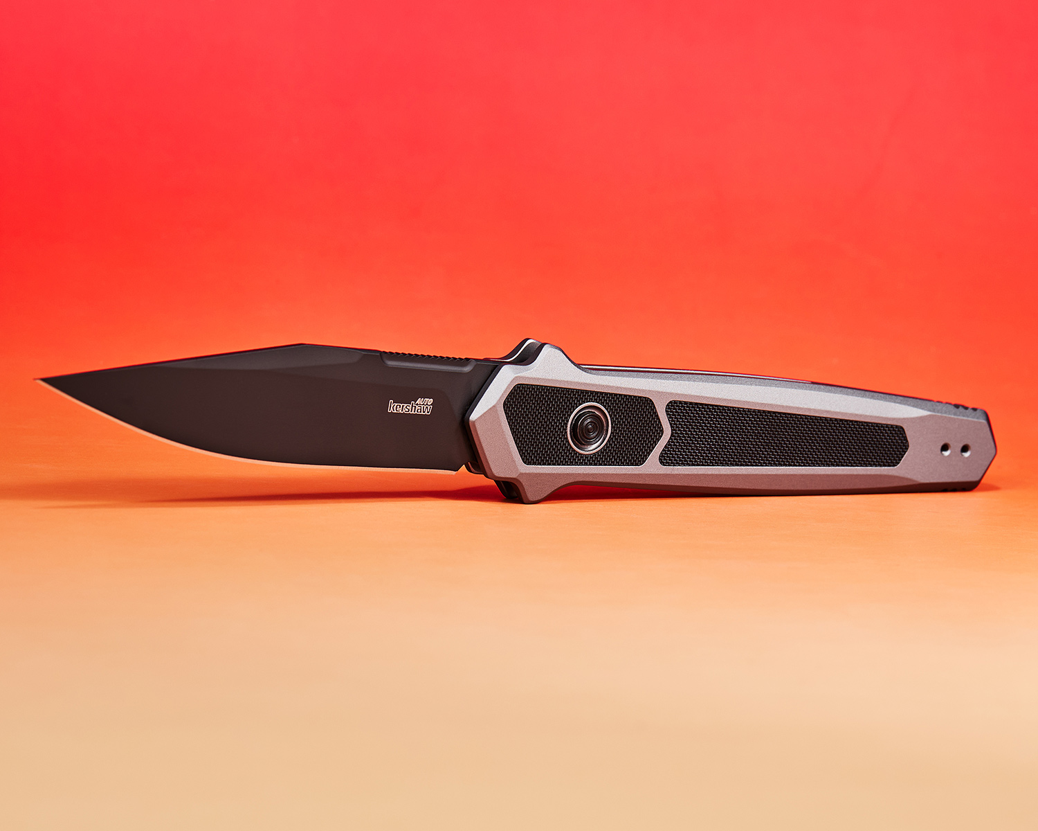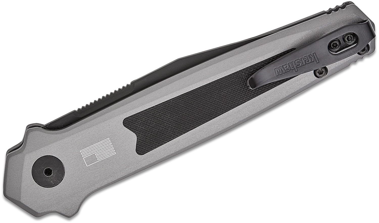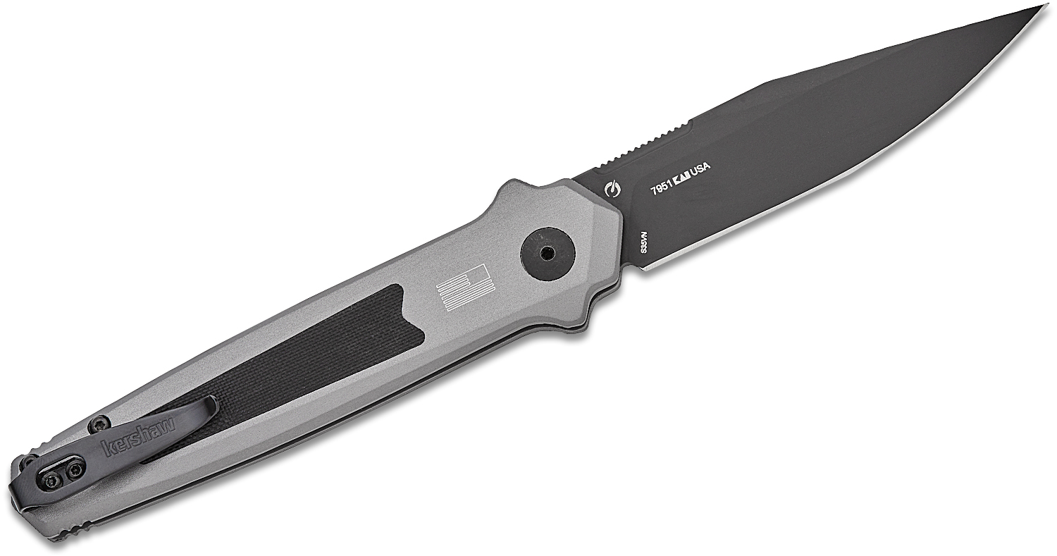Kershaw 7951 Launch 17 AUTO Folding Knife 3.5" CPM-S35VN Black Cerakoted Clip Point Blade, Gray Aluminum Handles with Textured G10 Inlays, Reversible Clip