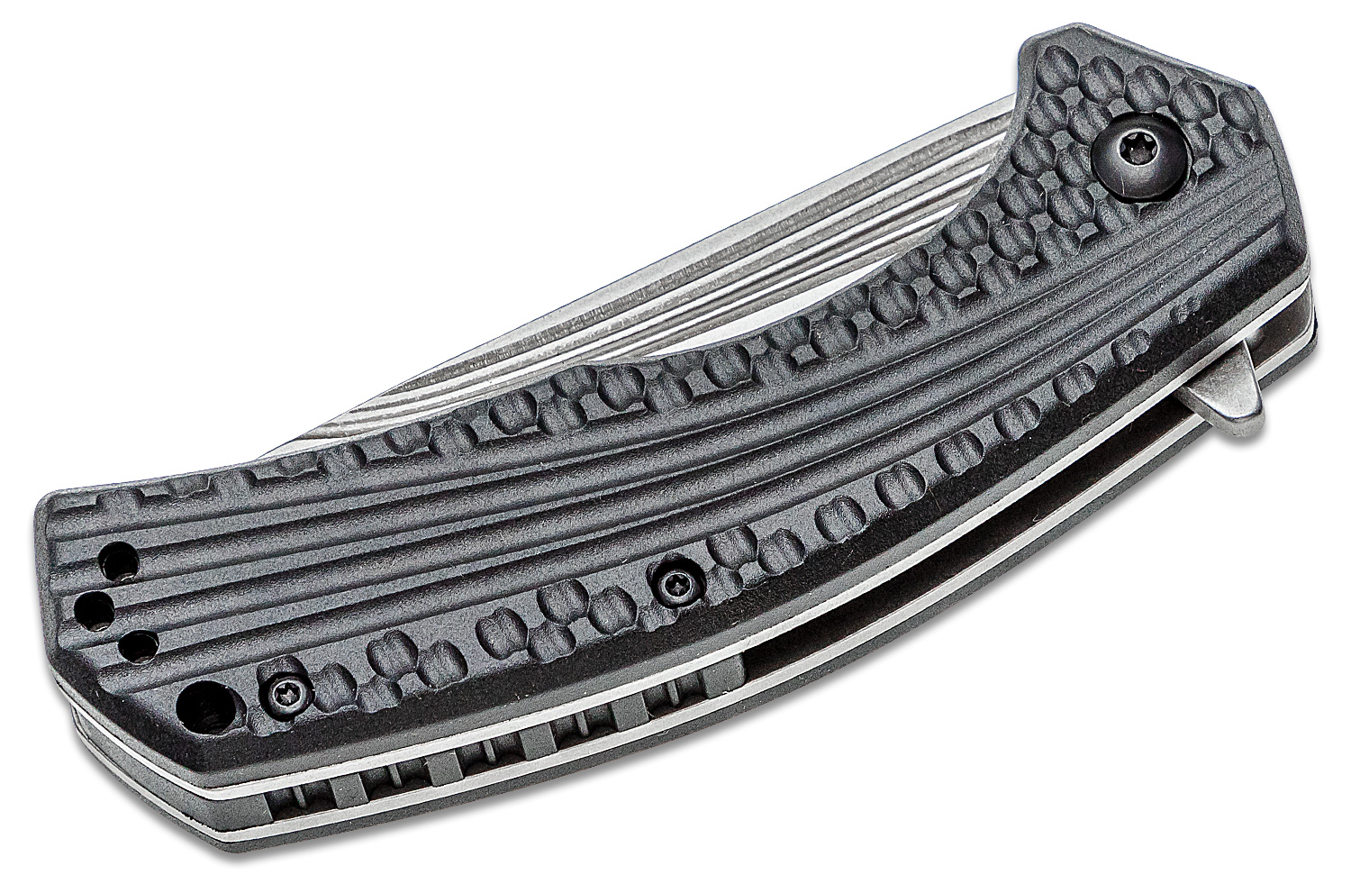 The Portal features sweeping lines that flow across the blade and down the handle. The machined grooves along the top of the blade are echoed by its razor-sharp edge and blade shape perfect for a wide variety of cutting tasks.