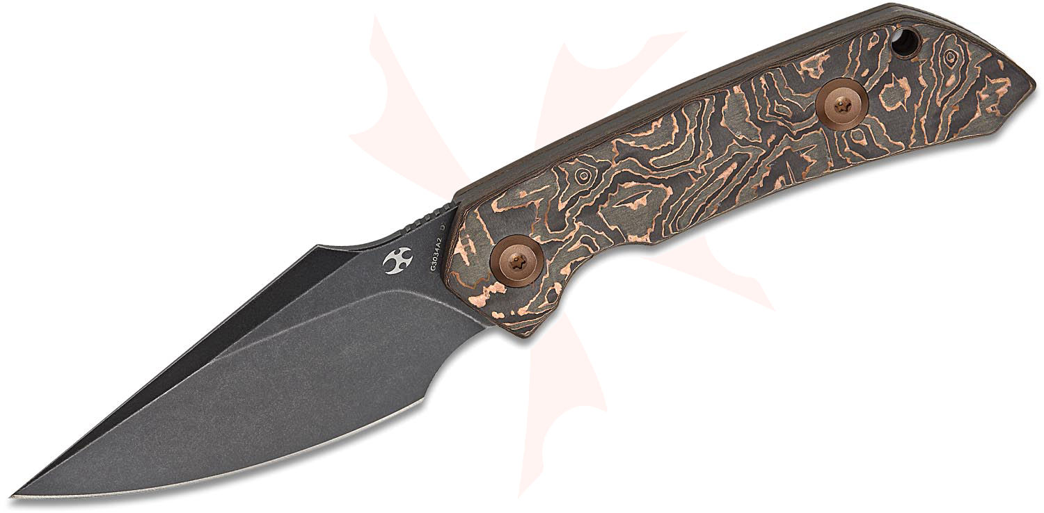 Kansept Knives Fenrir Fixed Blade Knife 2.87" D2 Black Stonewashed Harpoon Blade, Black Copper Carbon Fiber Handles - G3034A2