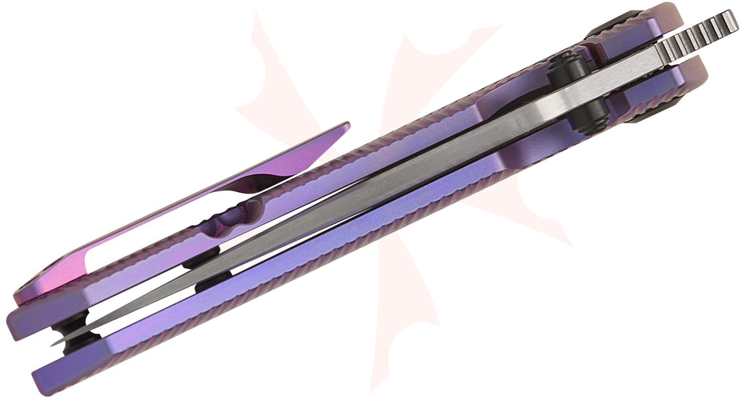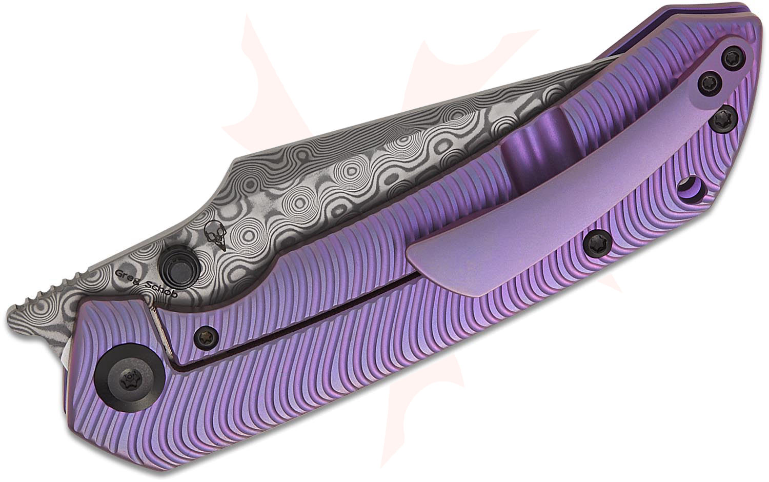 - Handle Material: Purple Micro Milled "Water Ripple" Titanium