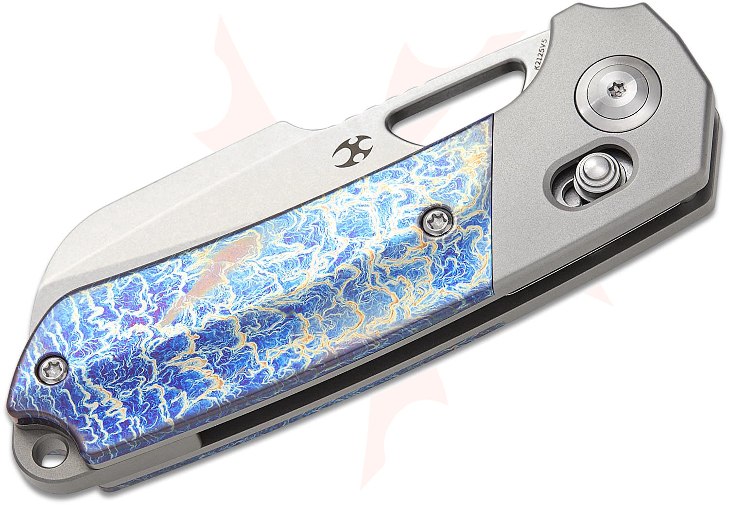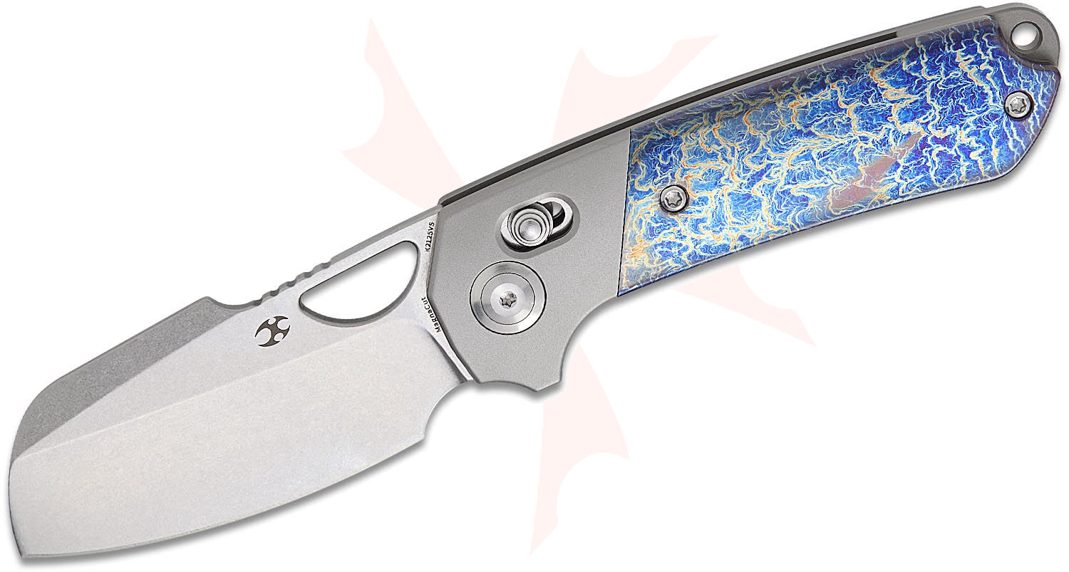 Kansept Knives Javi Garcia Nahual Crossbar Lock Flipper Knife 2.95" CPM-MagnaCut Stonewashed Modified Sheepsfoot Blade, Bolstered Bead Blasted Titanium Handles with Lightning Strike Titanium Scales - K2125V5
