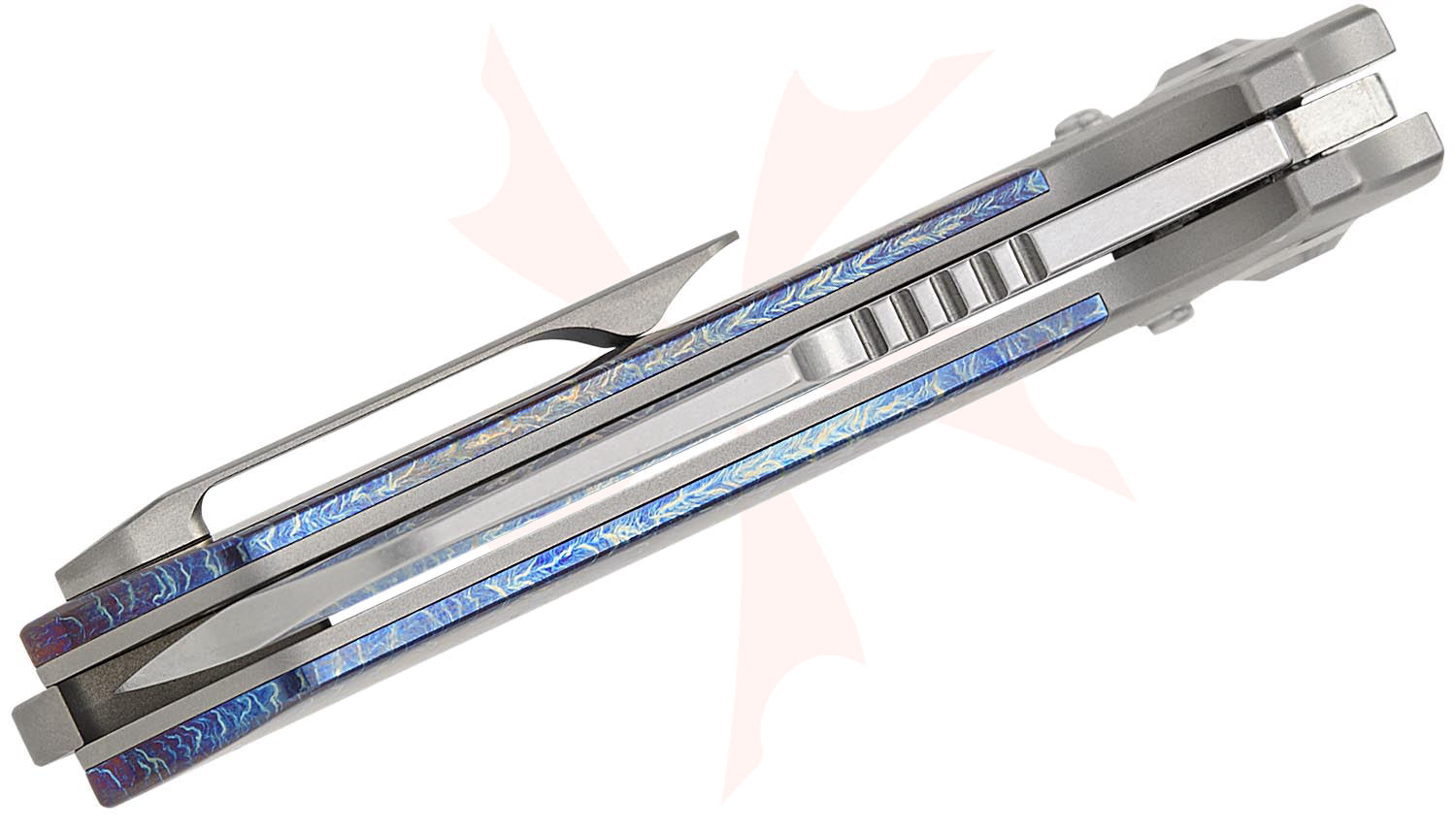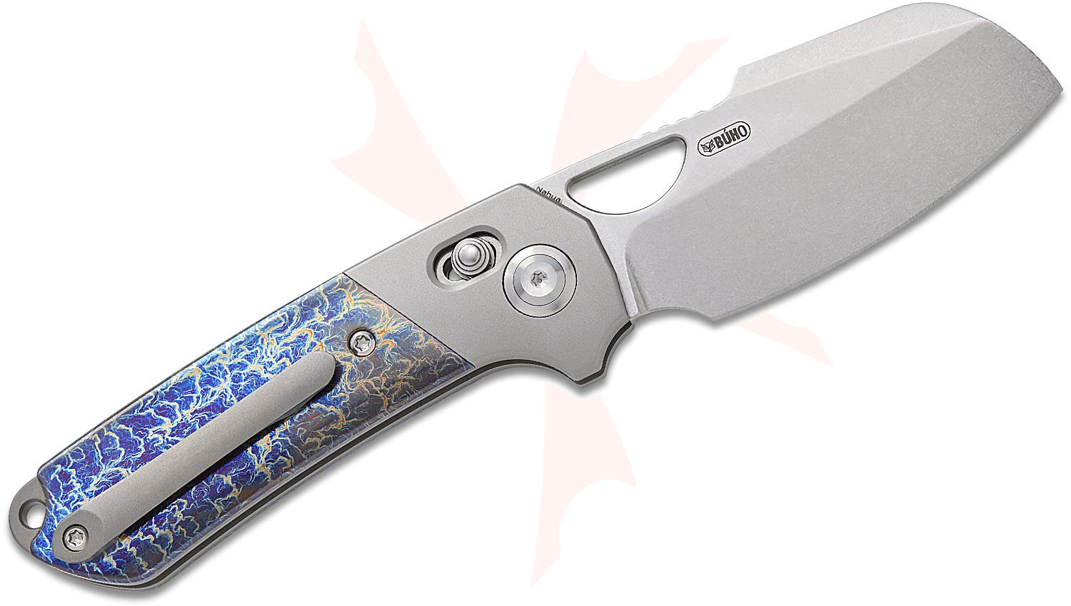 - Handle Material: Bolstered Bead Blasted Titanium with Lightning Strike Titanium Scales