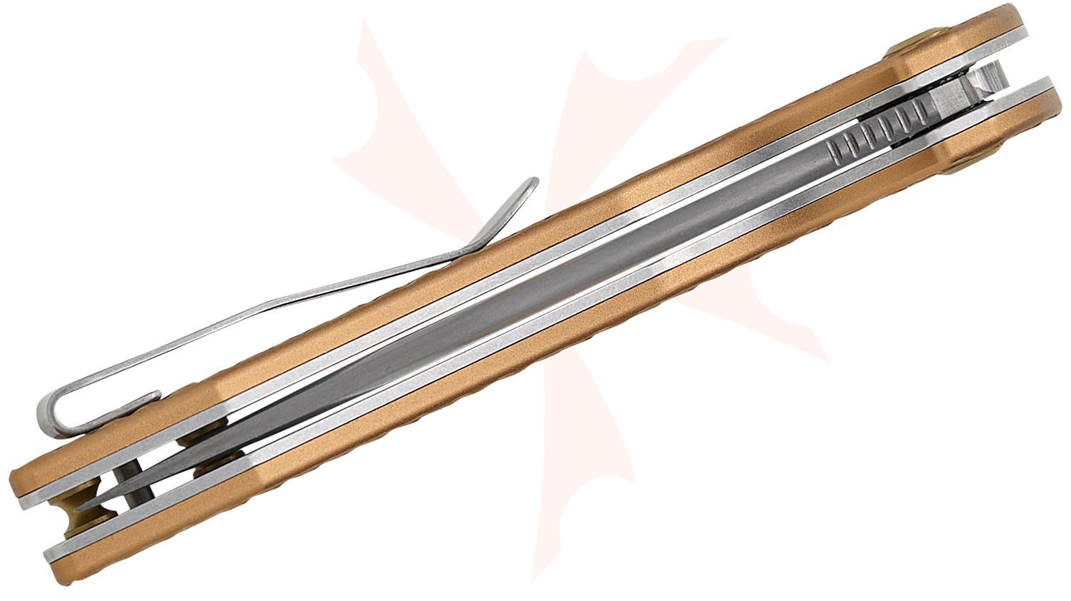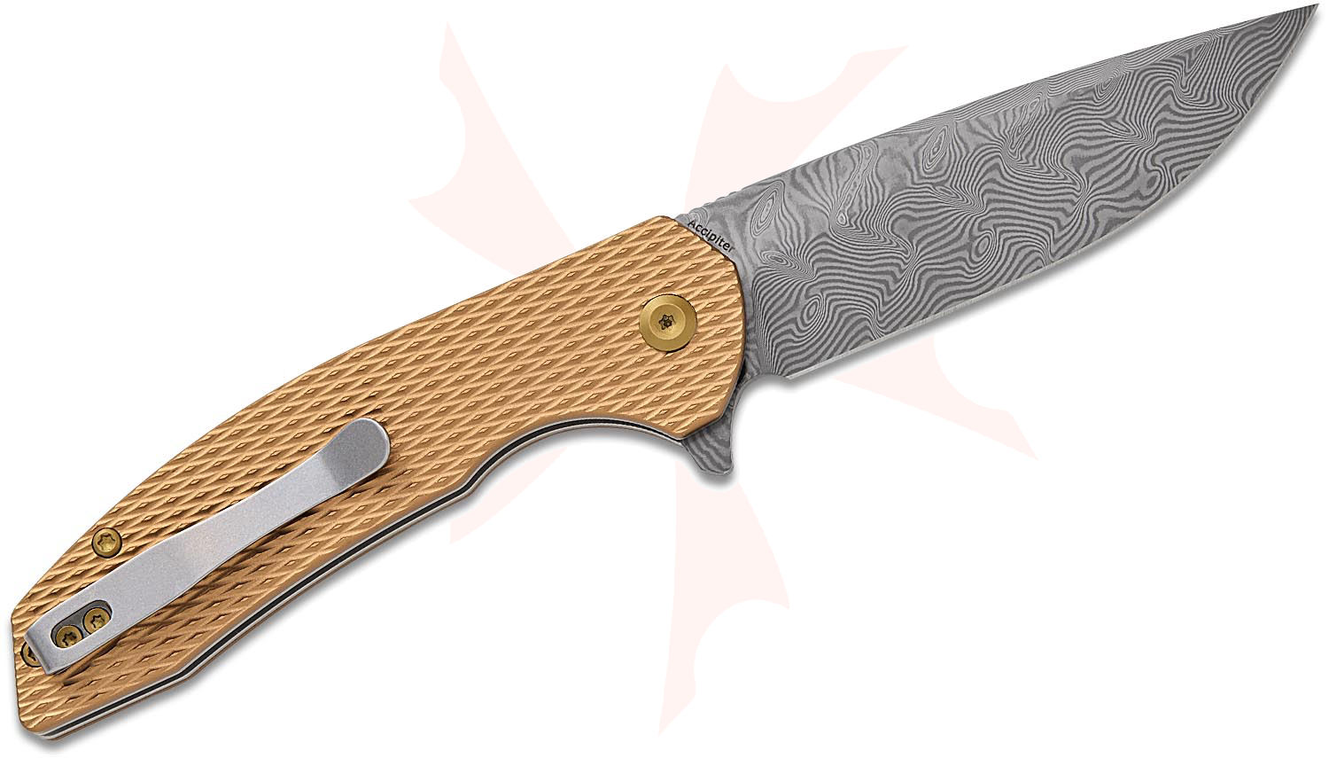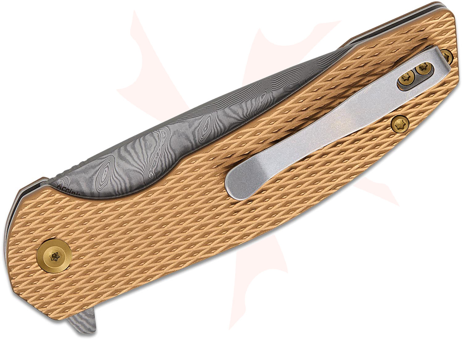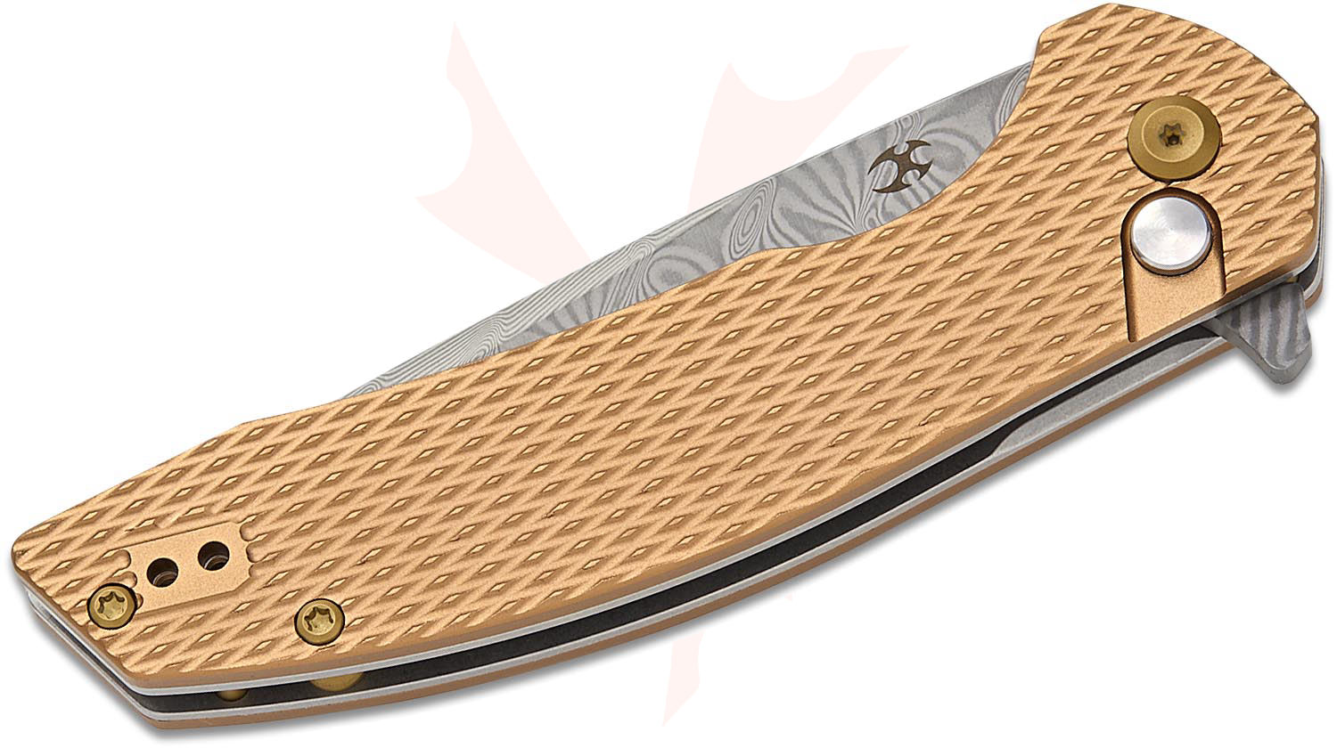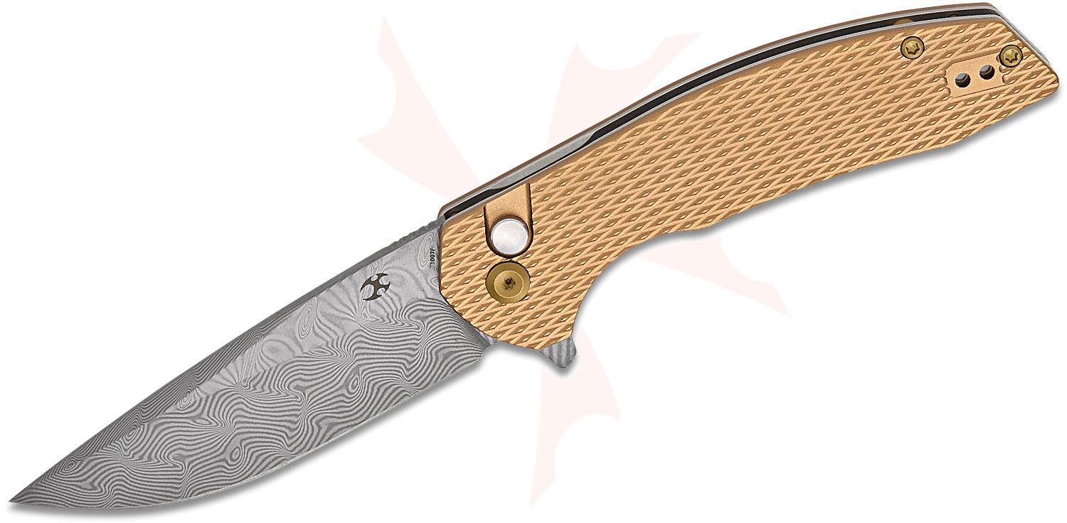 KSPT1007F4: T1007F4 Damascus Accipiter Flipper Knife, Bronze Aluminum
