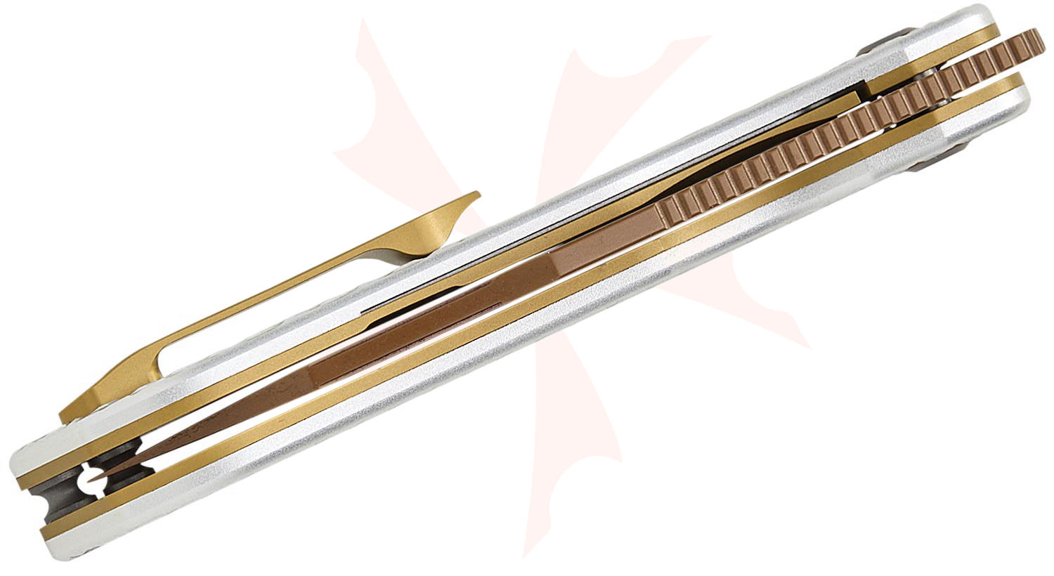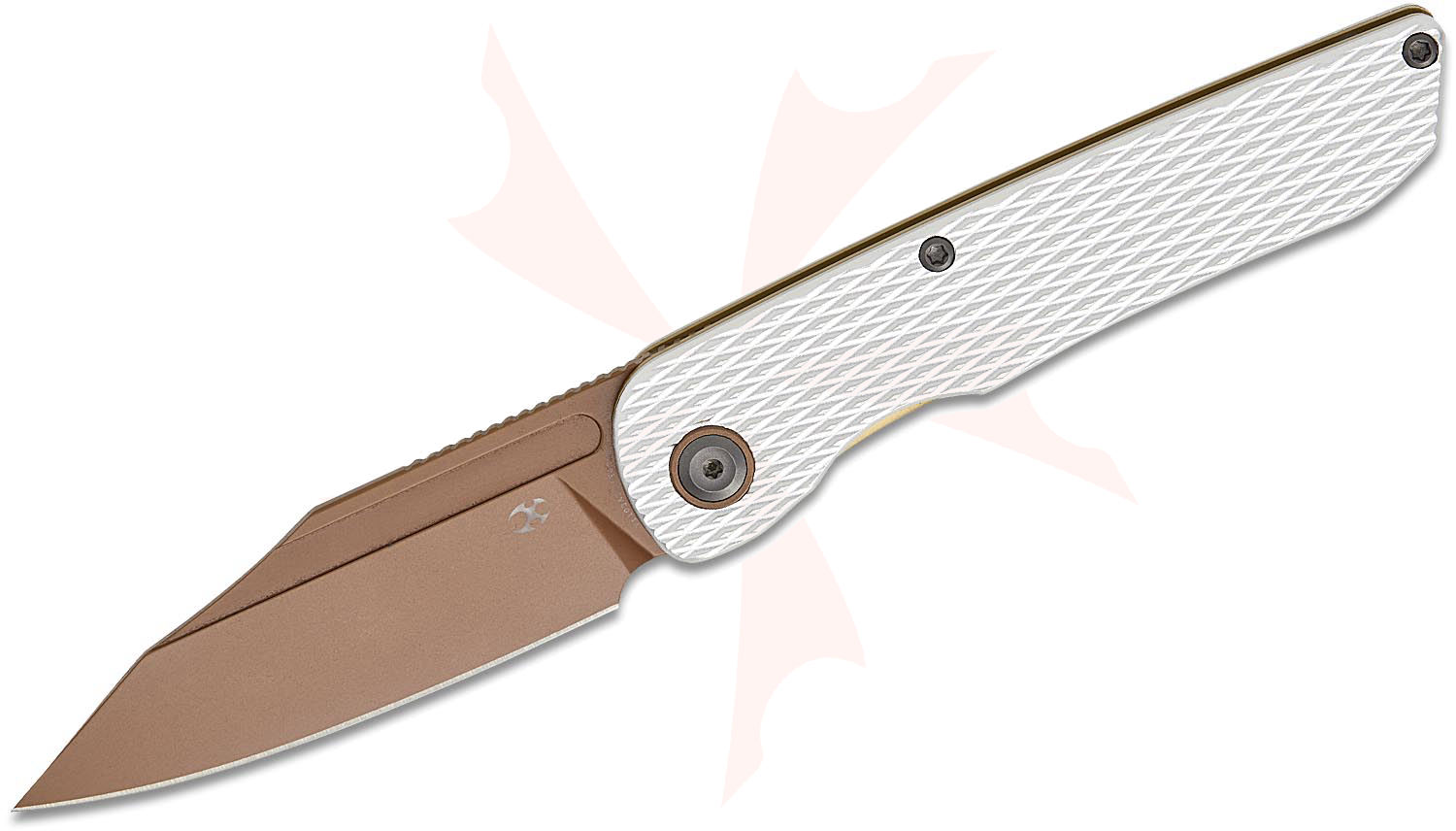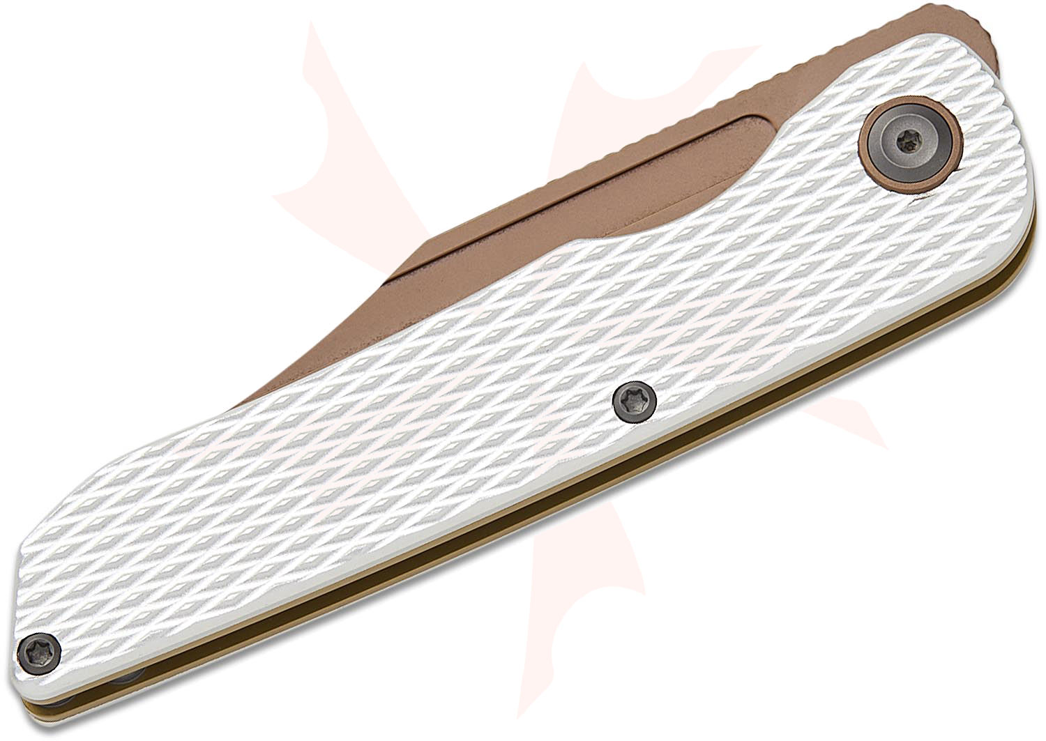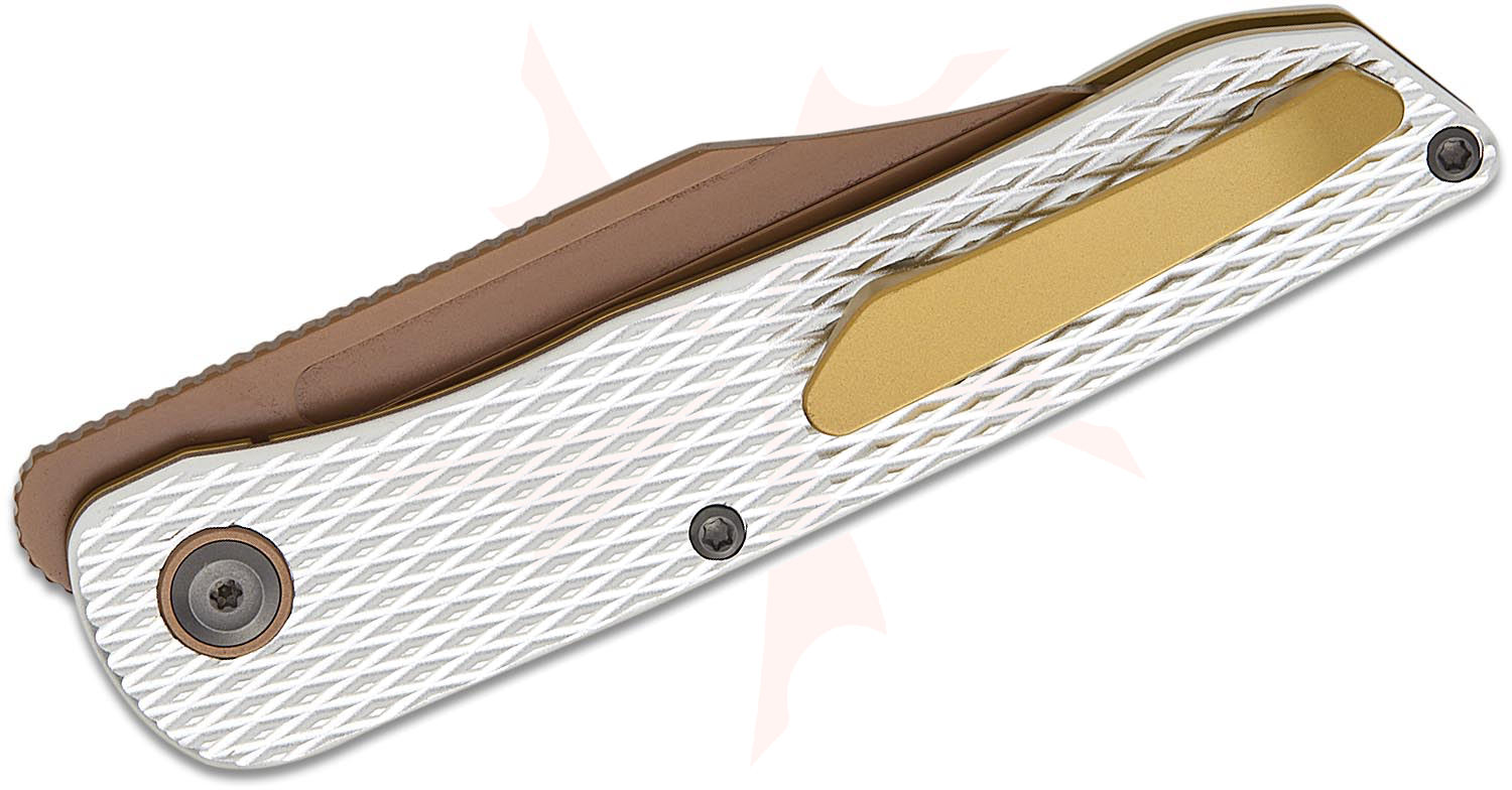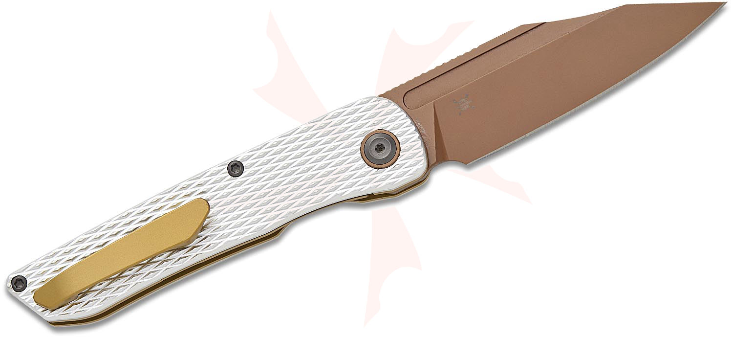 Kansept Knives Nettle Front Flipper Knife 3.28" 154CM Rose Gold Reverse Tanto Blade, Diamond Texture Silver Aluminum Handles, Liner Lock - T1103A3