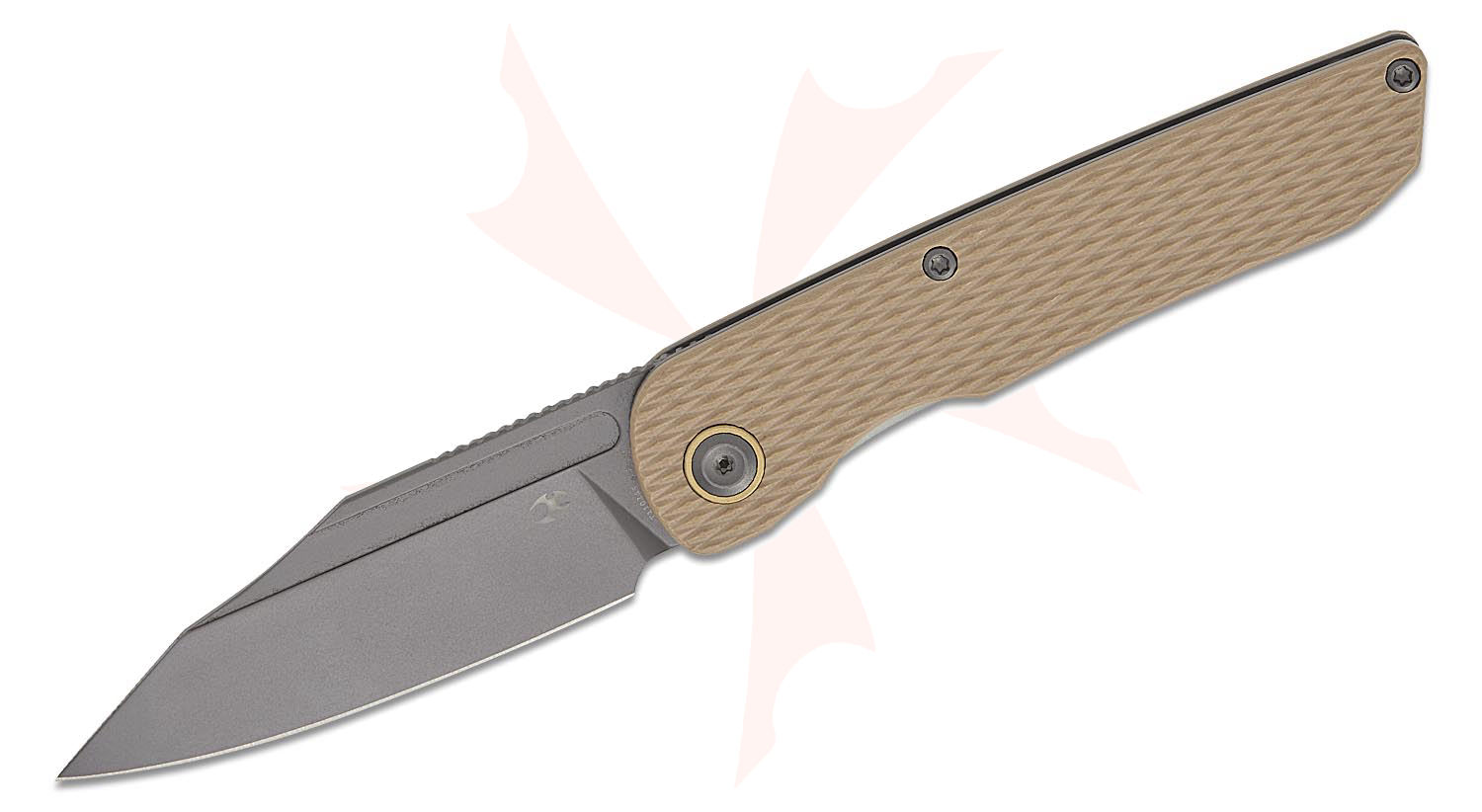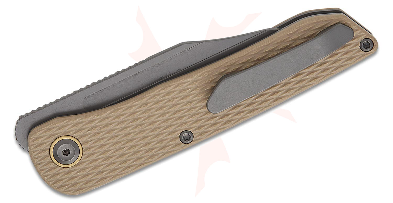 Kansept Knives Nettle Front Flipper Knife 3.28" 154CM Gray TiNi Coated Reverse Tanto Blade, Diamond Texture Light Sand G10 Handles, Liner Lock - T1103A5
