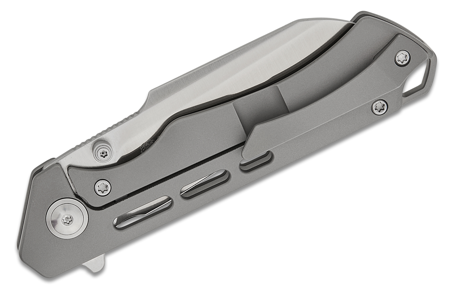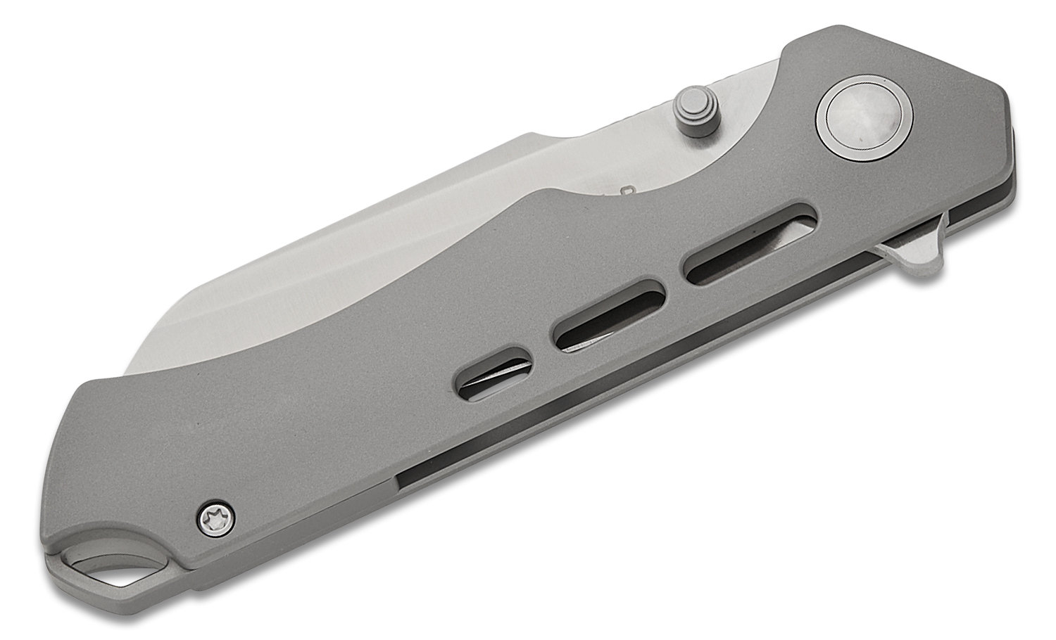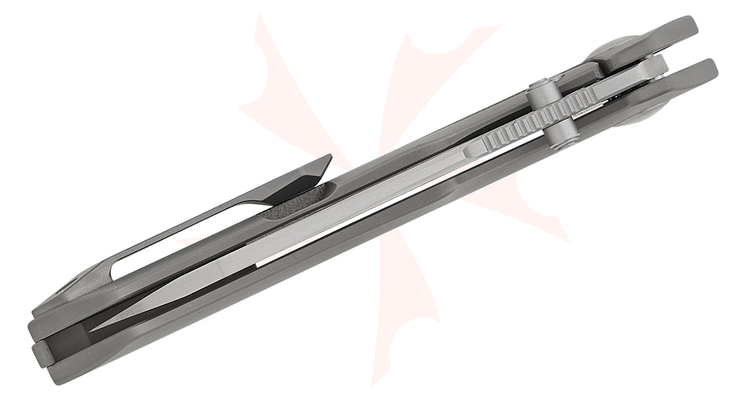 Kizer Cutlery Gecko Customz Crest Frame Lock Flipper Knife 3.03" CPM-S35VN Satin Sheepsfoot Blade, Contoured Slot Milled Titanium Handles - Ki3714A1