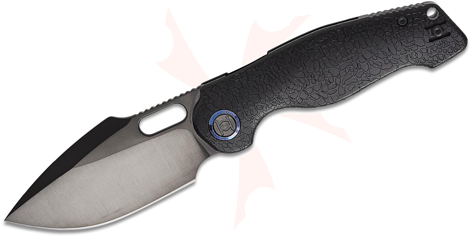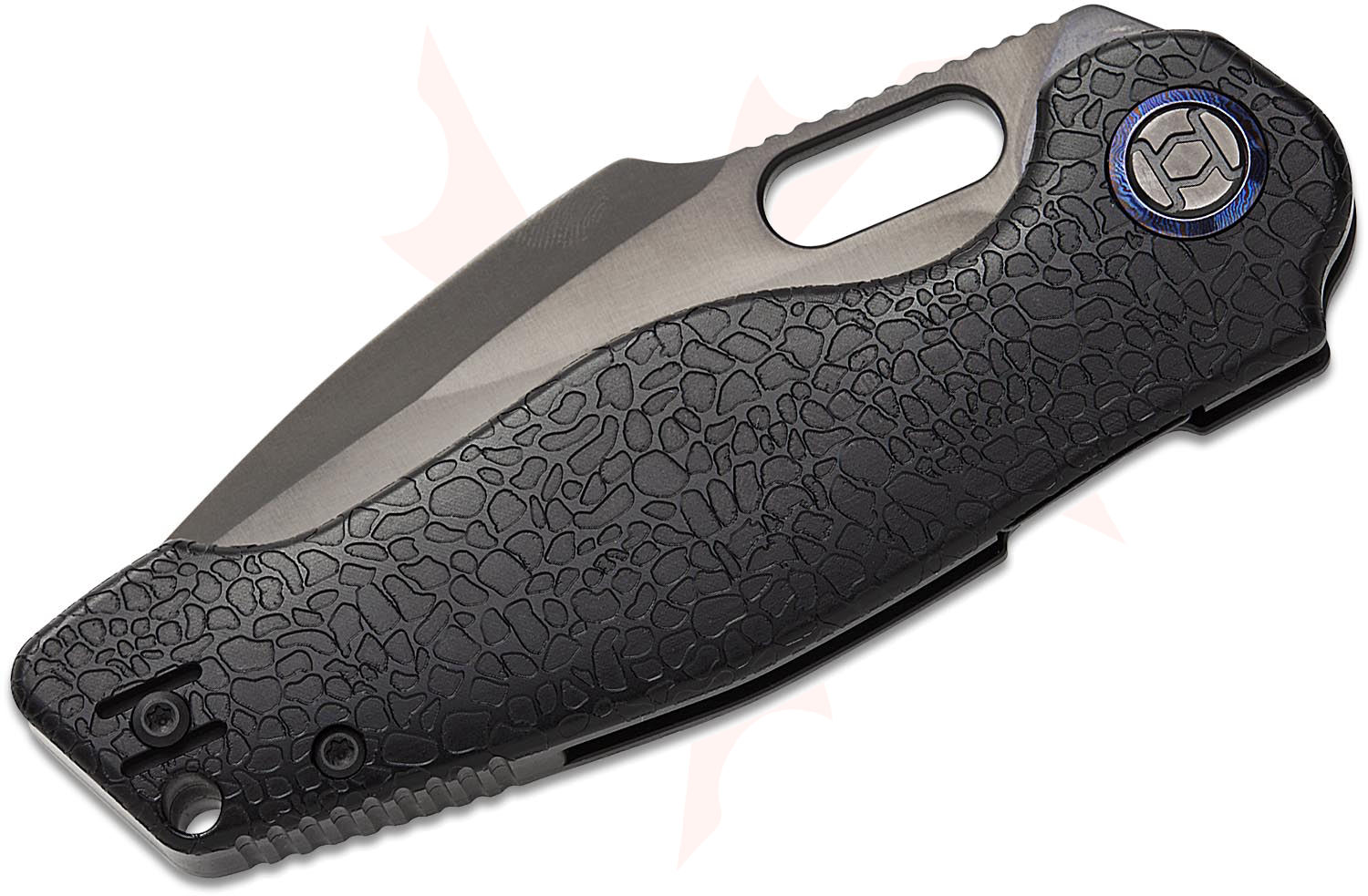 Kunwu Knives Gringo Verta Lock Folding Knife 3.66" Black DLC Harpoon Blade, Black PVD Honey Dew Textured Titanium Handles, Timascus Pivot Collars, Compression Lock - B712T-R2-4
