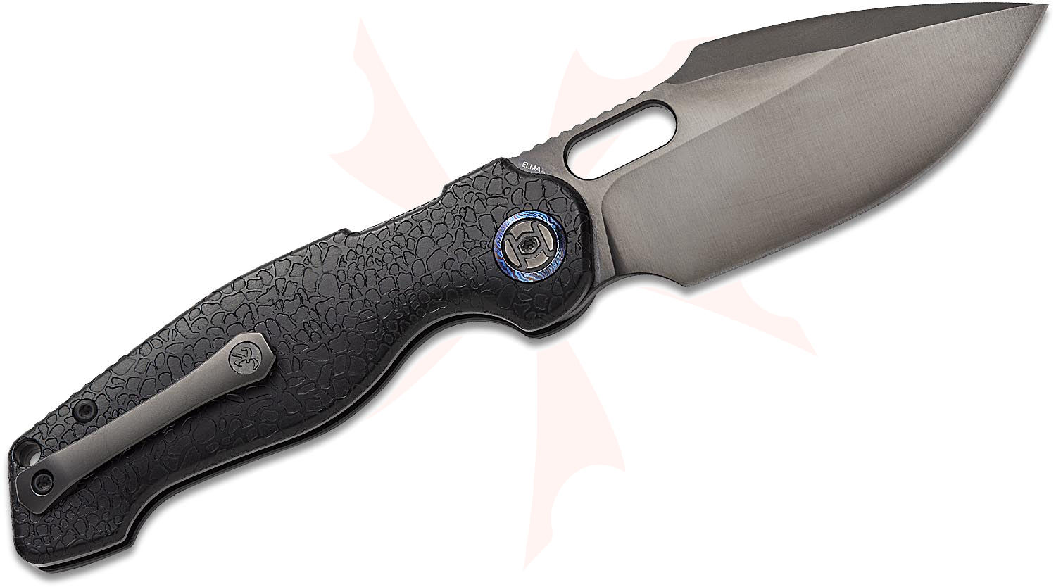 The Kunwu Gringo is a robust and premium-grade folding knife designed for heavy-duty everyday use, emphasizing top-tier steel performance and high-end construction. This full-sized folder boasts a 3.66" harpoon blade made from Elmax stainless steel, known for its exceptional edge retention, which is maximized by Kunwu's heat treat to a hardness of 60-62 HRC. The harpoon blade features a tactical Black DLC finish. The handles are crafted from gorgeously milled Honey Dew textured titanium. The knife operates with a smooth thumb hole and locks up solid with the spine's Verta Lock. At 6.42 ounces, the Gringo offers a substantial feel in hand, delivering a blend of exotic material performance and reliable, overbuilt construction. It also features a reversible titanium pocket clip for ambidextrous carry.