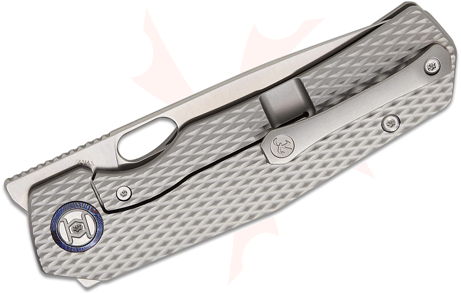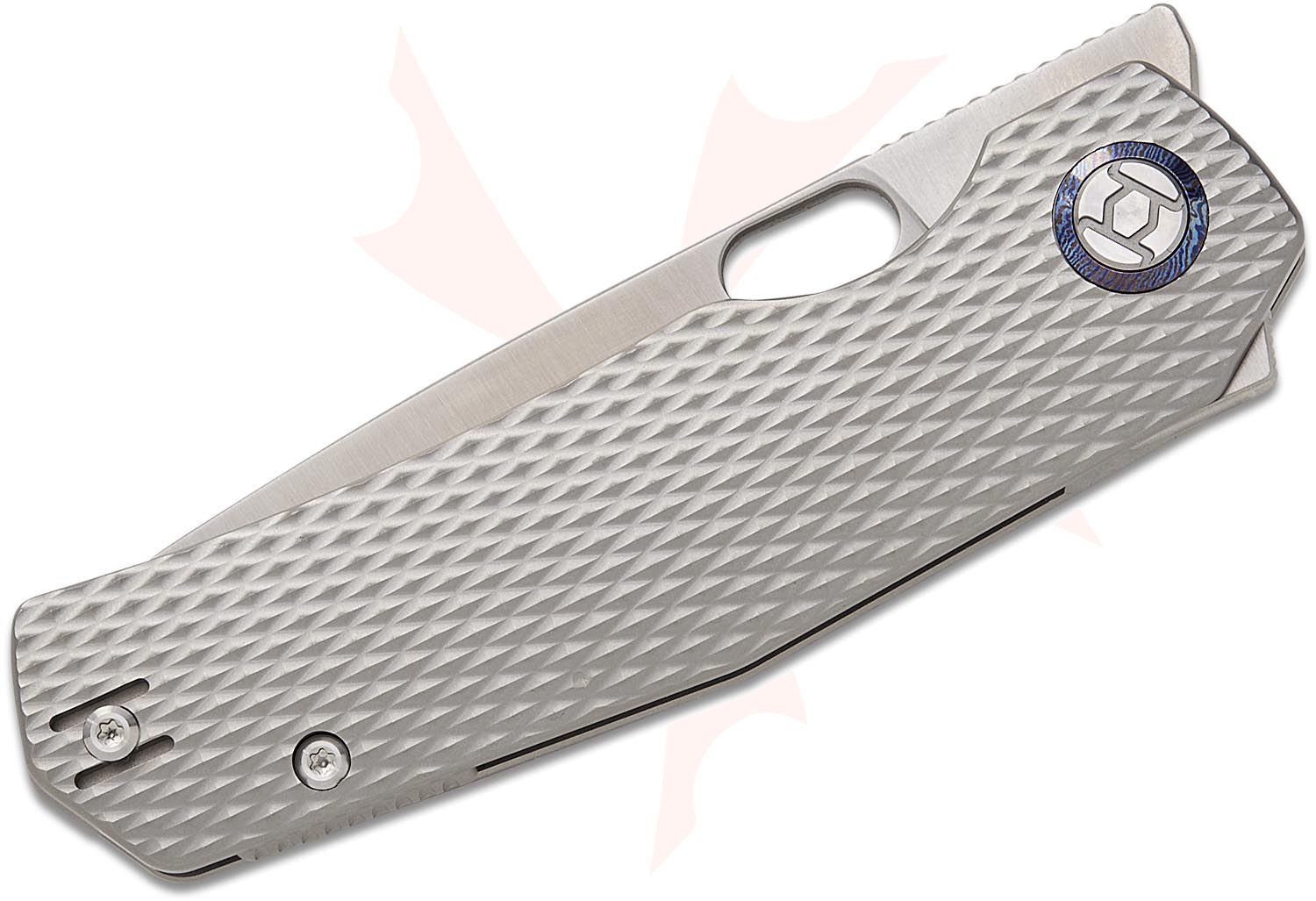 Kunwu Knives TAO III Frame Lock Flipper Knife 3.5" Vanax Satin Drop Point Blade, Gray Diamond Textured Titanium Handles, Timascus Pivot Collar - K703L-T1A