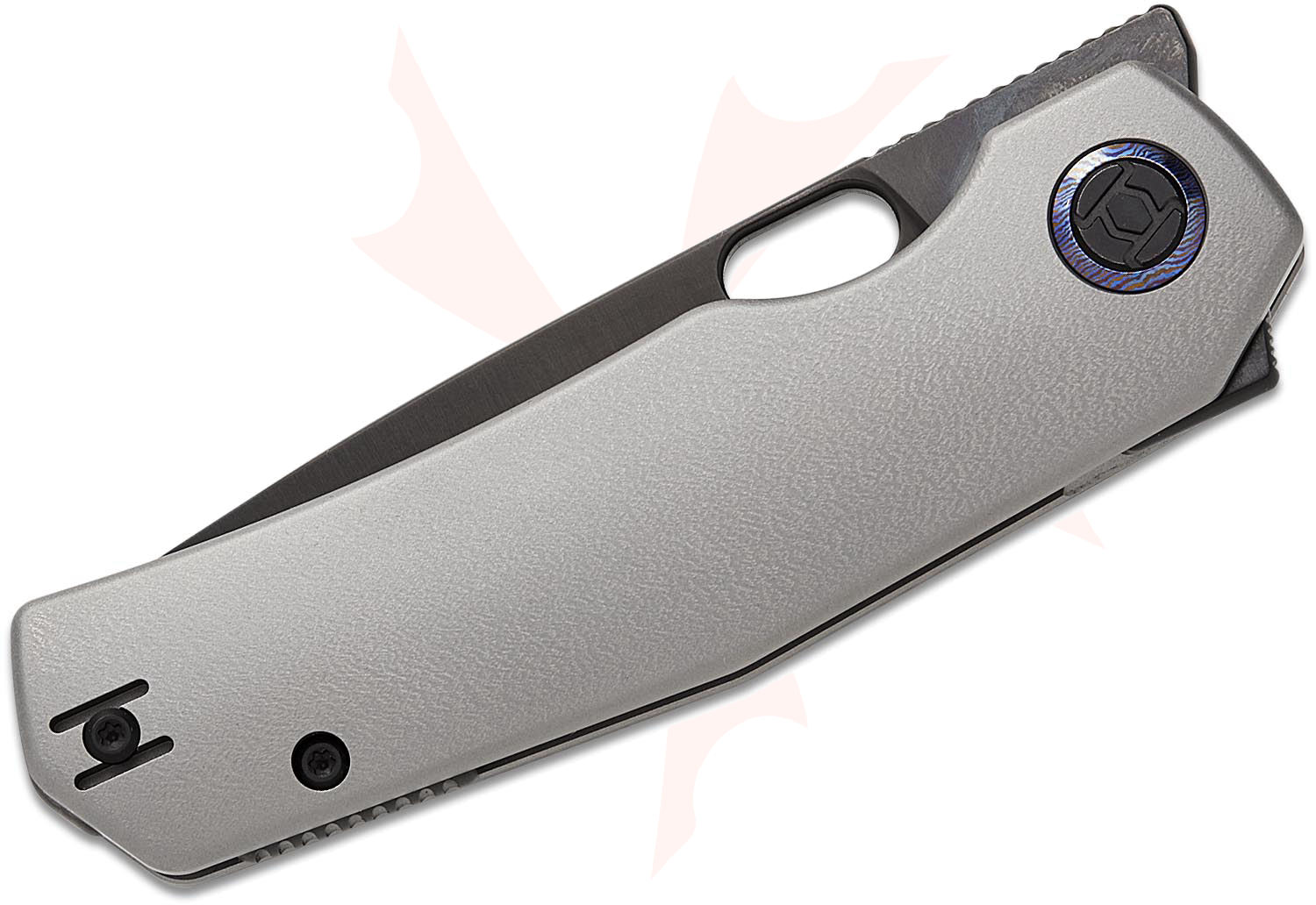 Kunwu Knives TAO III Frame Lock Flipper Knife 3.5" Vanax Black DLC Drop Point Blade, Gray Orange Peel Textured Titanium Handles, Timascus Pivot Collar - K703L-T2R