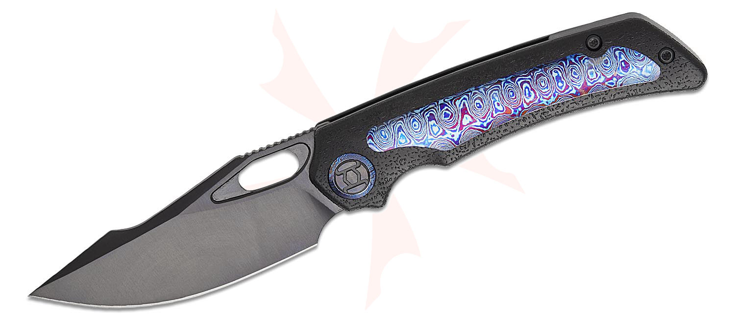 - Handle Material: Black PVD Raindrop Textured Titanium with Timascus Inlay