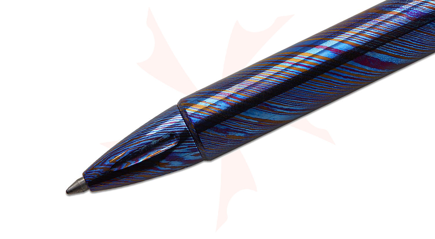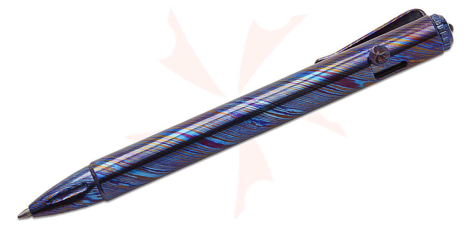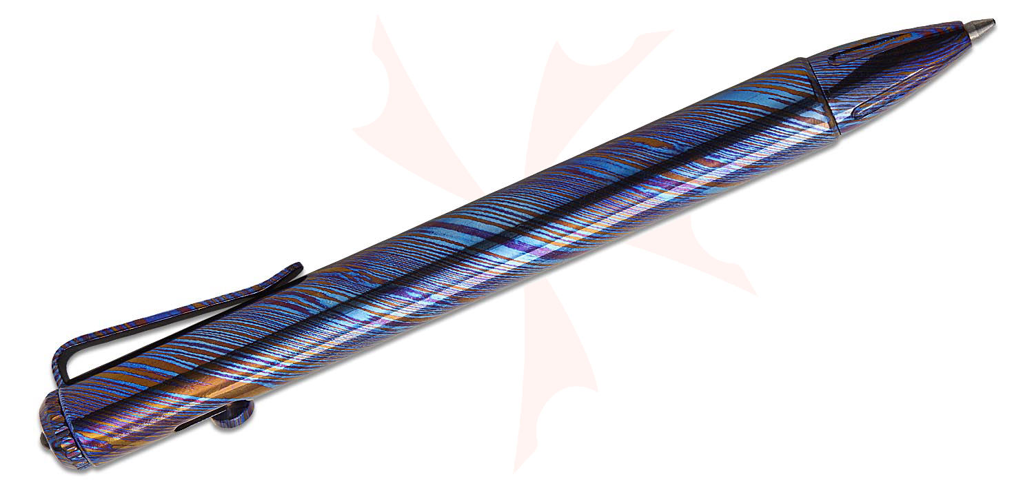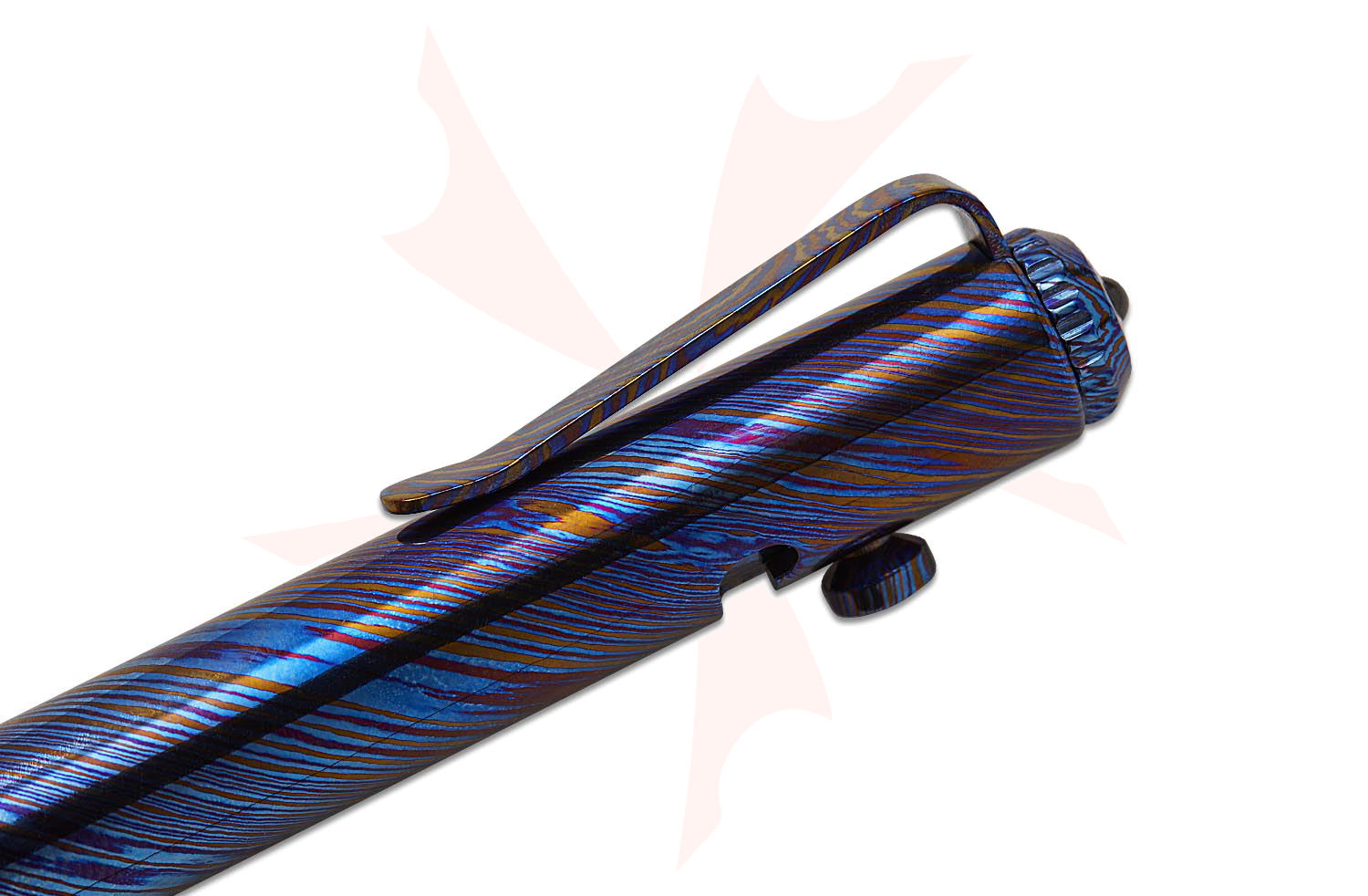 Kunwu Knives Full Timascus Bolt Action Pen, 5.11" Overall, Glassbreaker - KWPEN-1