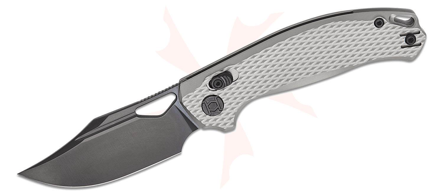 The Kunwu Django is a folding knife that emphasizes Kunwu's focus on precision engineering. The Elmax blade is swiftly deployed by using the thumb hole, and swings open smoothly thanks to the excellent pivot construction. The clip point blade locks up with a sturdy crossbar lock mechanism, making this pocket knife reliable and trusty. Machined diamond-textured titanium handles give a comfortable grip for heavy use, while the titanium pocket clip ensures easy transport. The Django folding knife provides a quality experience that Kunwu is becoming known for.