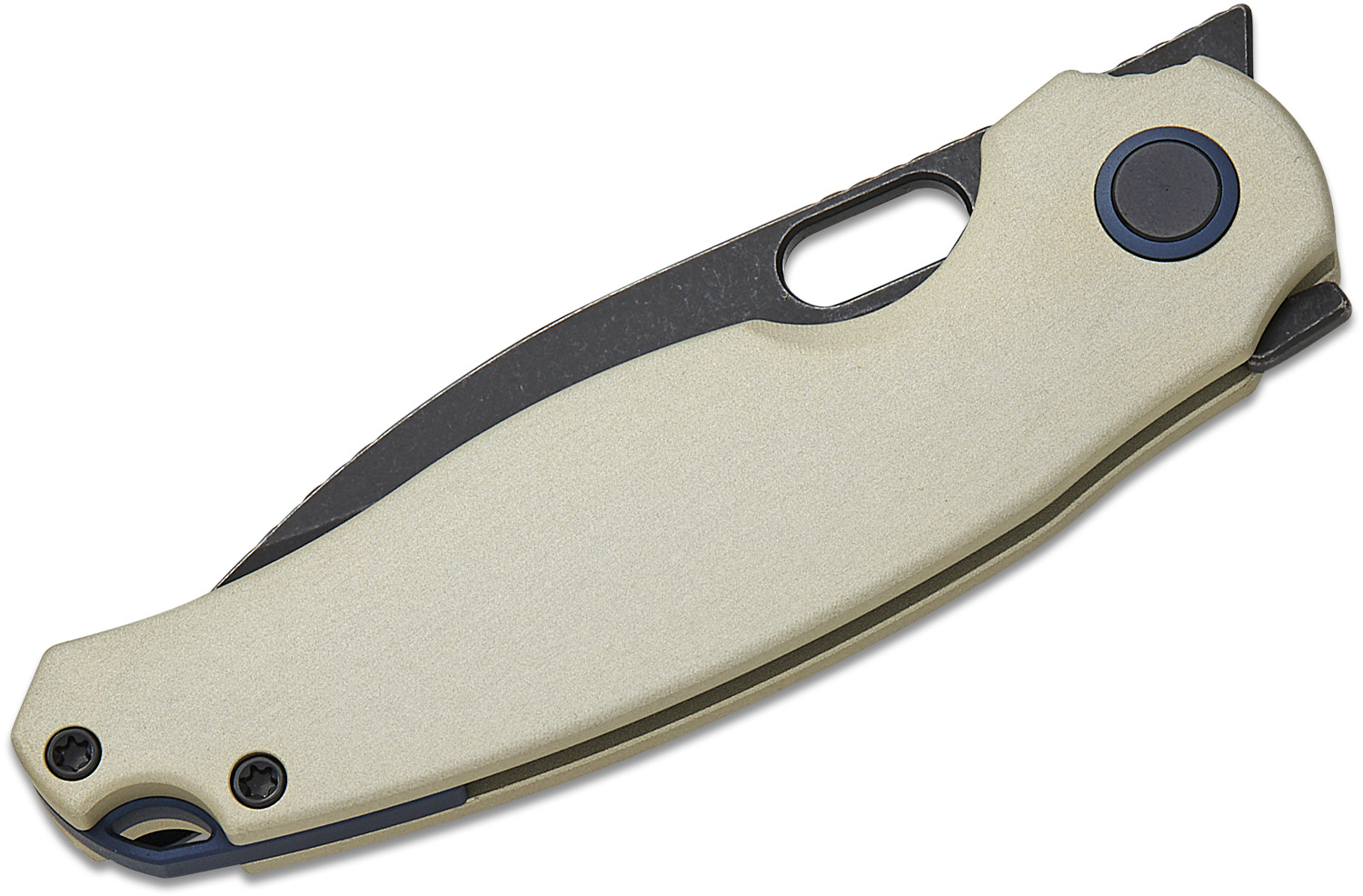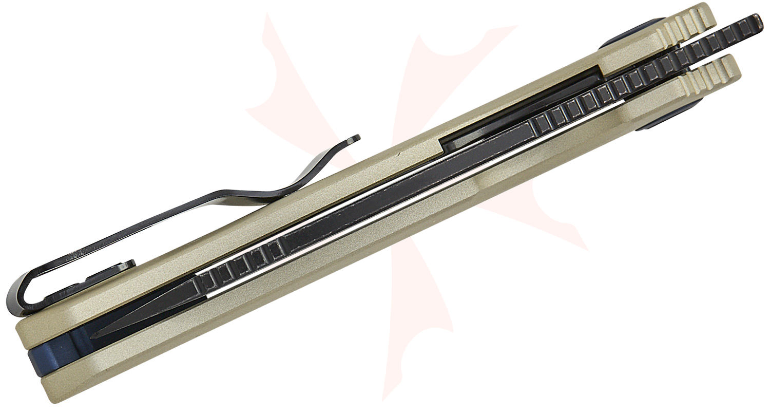 The Sandvik 14C28N steel blade strikes a balance of hardness and toughness, with excellent edge retention and corrosion resistance that make it reliable for both everyday and outdoor tasks. Hollow grinding reduces steel mass for a thinner, sharper edge while the curved profile disperses stress, giving a refined balance of cutting precision and durability. The handle, crafted from tan anodized with a skeletonized stainless steel liner, offers a secure, comfortable grip and lightweight strength. A stainless steel pocket clip completes the package, ensuring practical carry without compromising the knife’s sleek, hard-working design.