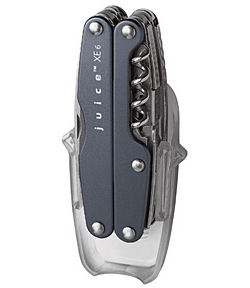 Leatherman hard clear plastic sheath for the Juice Tool. Clip holds sheath on belt. Tool can be carried like a cell phone.