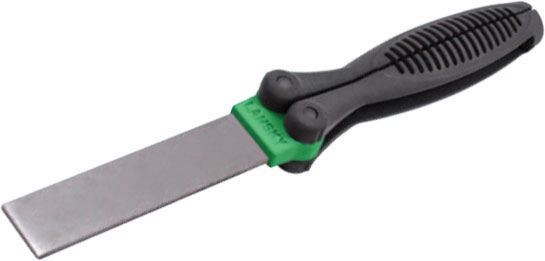 Lansky Folding Diamond Paddles offer single or double-sided full surface diamond sharpeners in one compact unit. Both double-sided models have the same folding convenience and contoured rubber over-molded handles and are the same size as the single-side folding diamond paddles. These are more robust and durable than previous models with a substantial improvement in grip ergonomics. Made in USA.